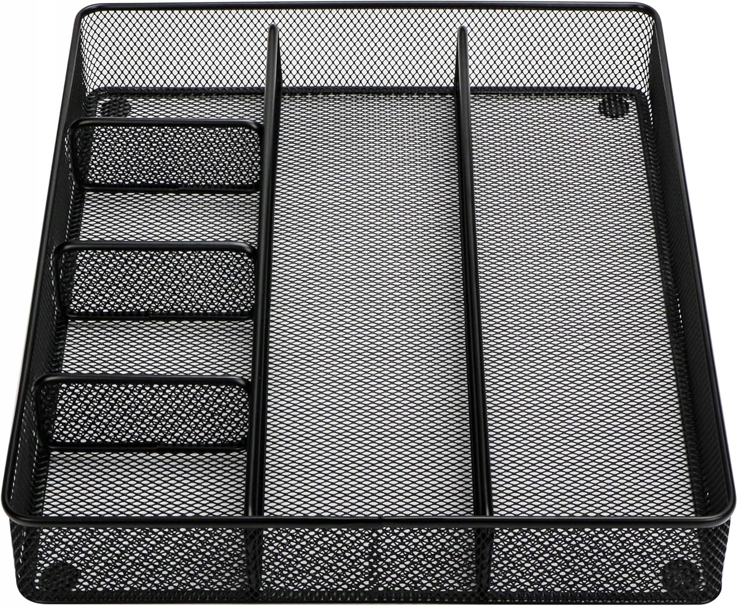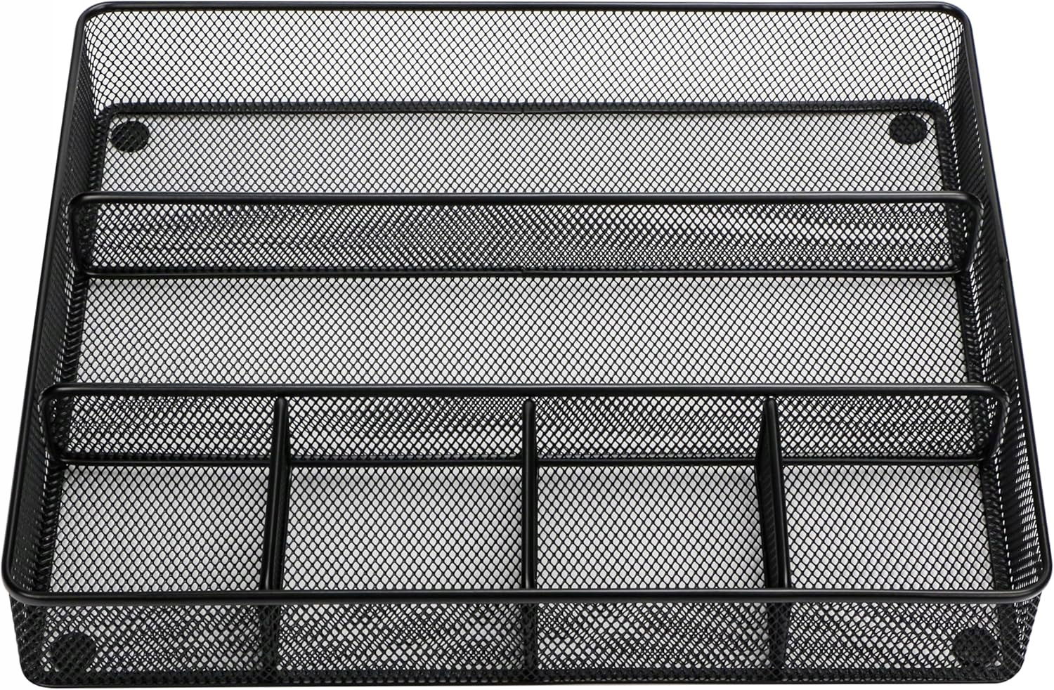 Tacka biurkowa Annova do organizacji biura – metalowa siatka – tacka z przegródkami na długopisy, akcesoria biurkowe, artykuły łazienkowe, kuchenne, kosmetyki i artykuły biurowe (duża, czarna)