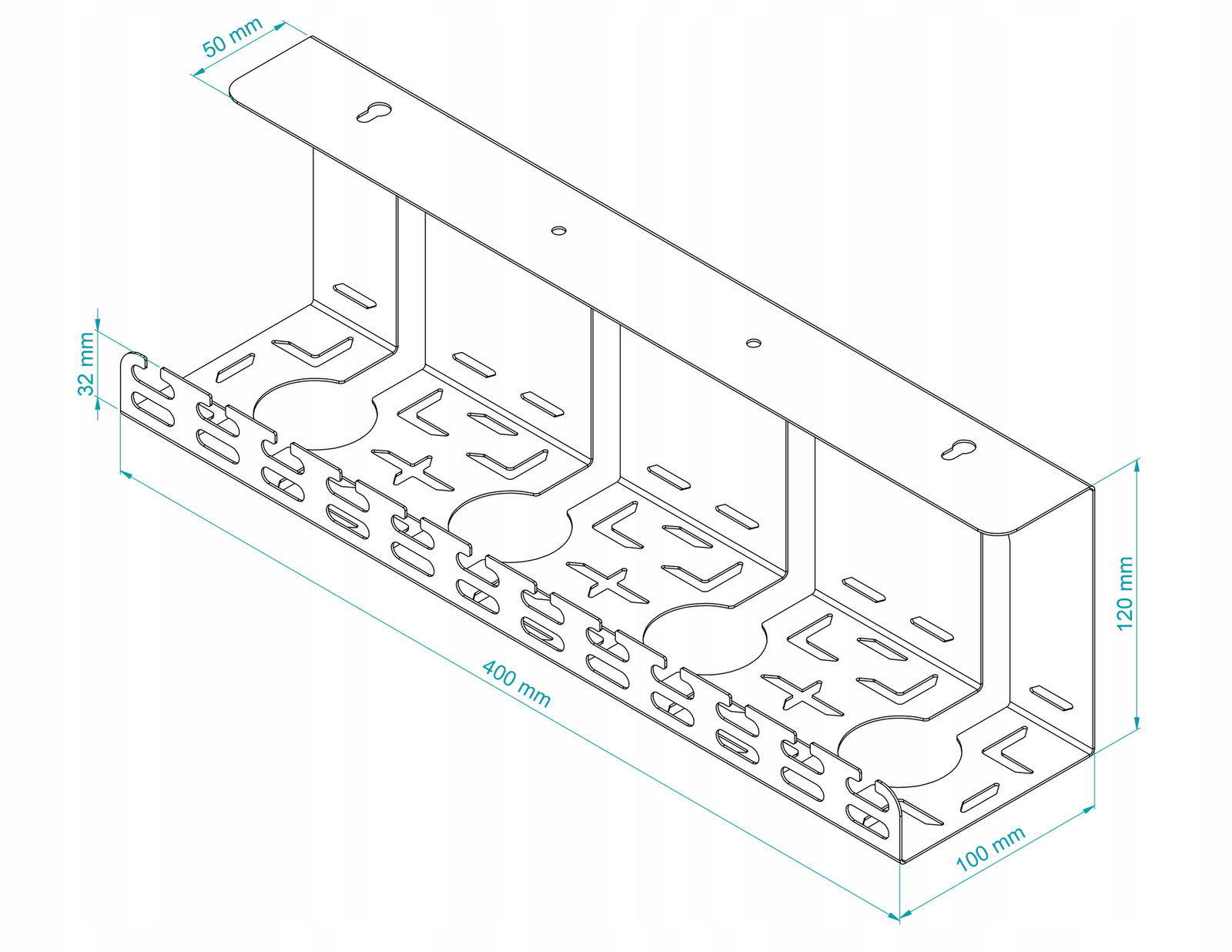 Montaż organizera kabli jest prosty dzięki przemyślanej konstrukcji z otworami na spodzie, które ułatwiają instalację.