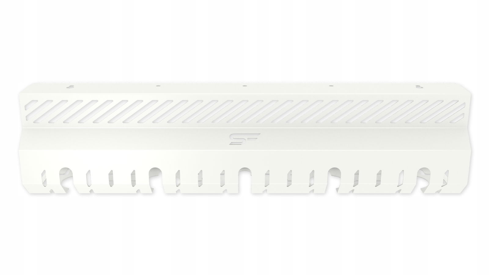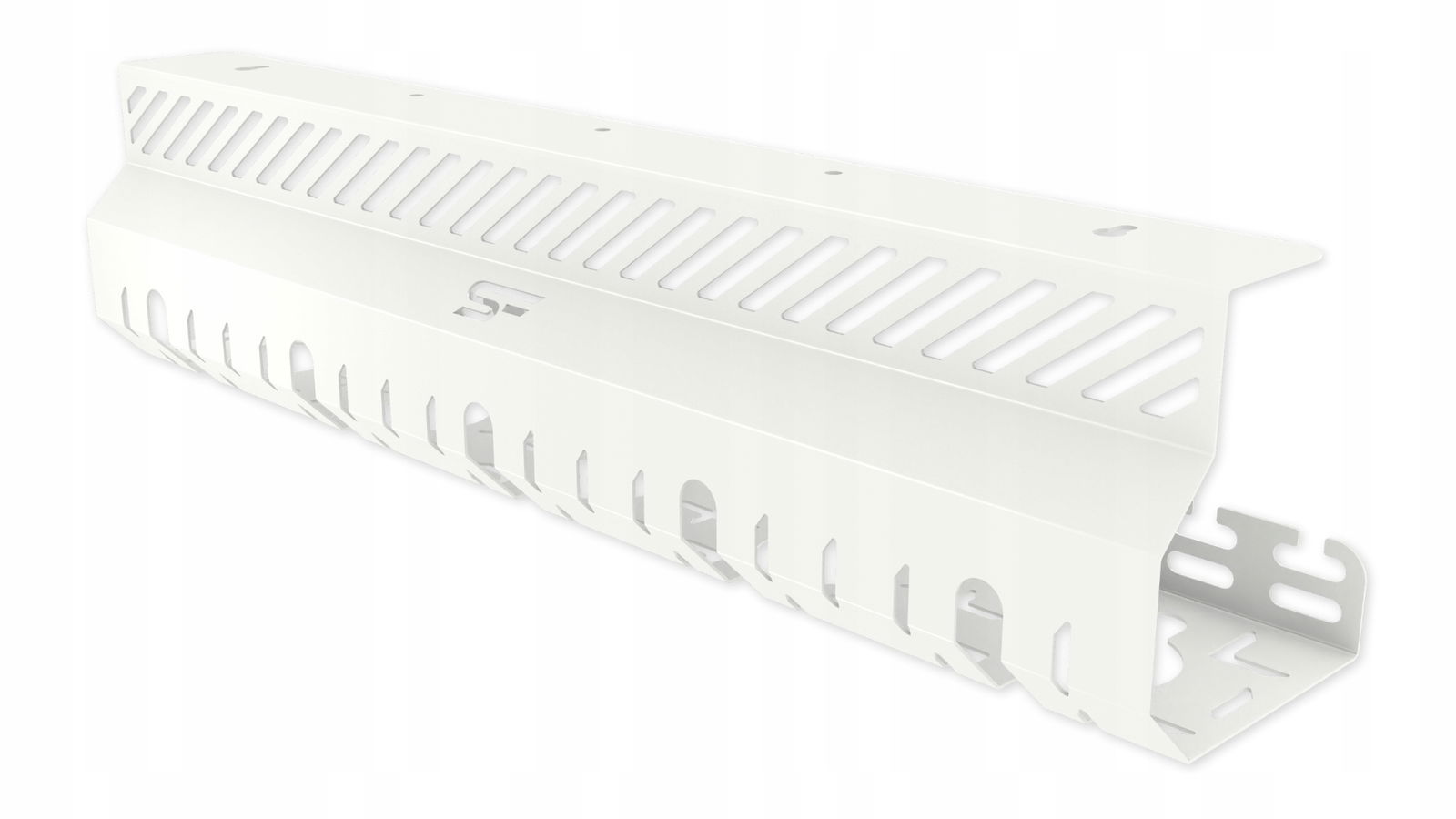 Montaż organizera kabli jest prosty dzięki przemyślanej konstrukcji z otworami na spodzie, które ułatwiają instalację.