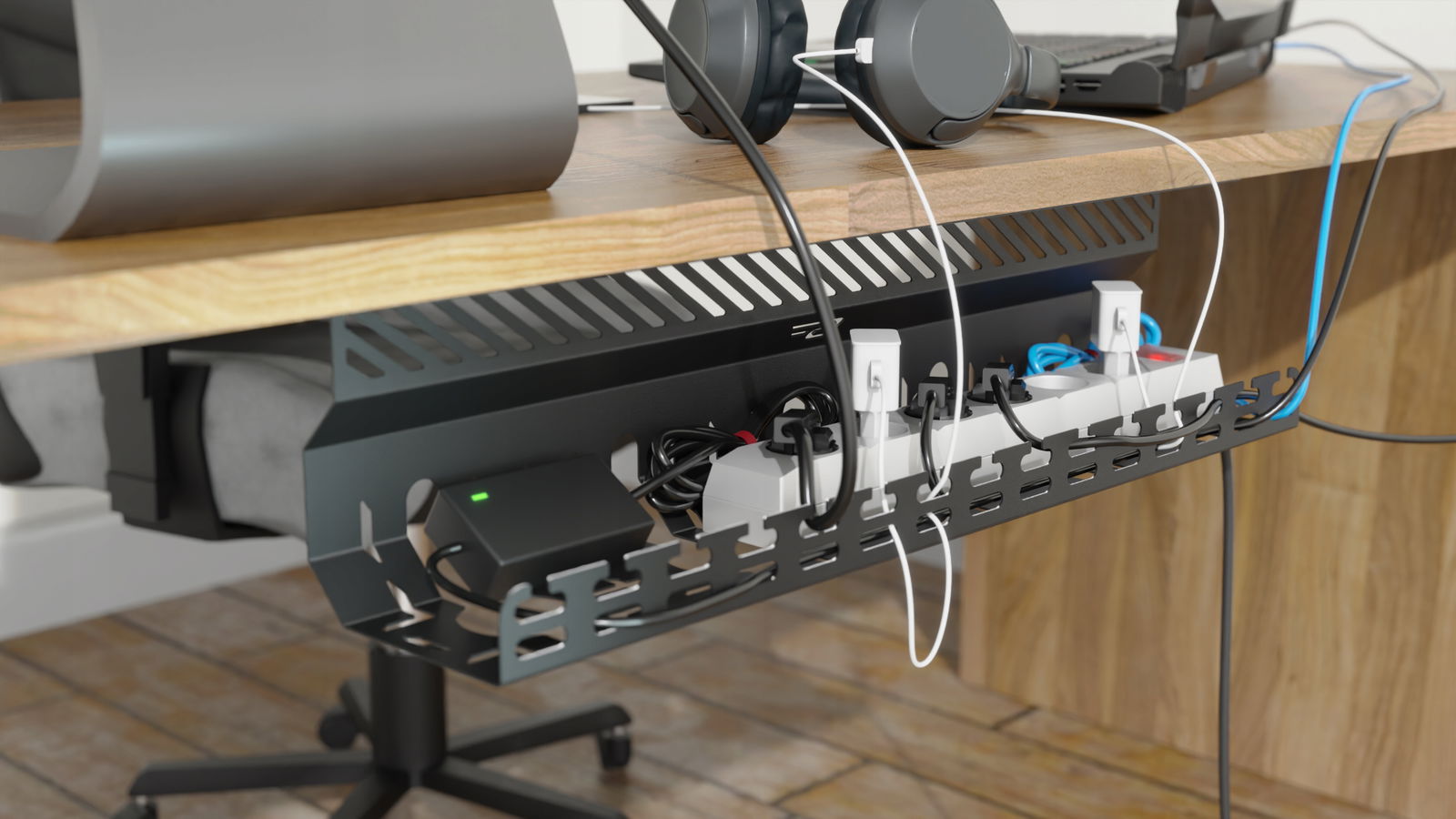 Jest to idealne rozwiązanie zarówno dla domu, jak i biura, szczególnie w miejscach, gdzie dzieci i zwierzęta mogą mieć dostęp do przewodów.