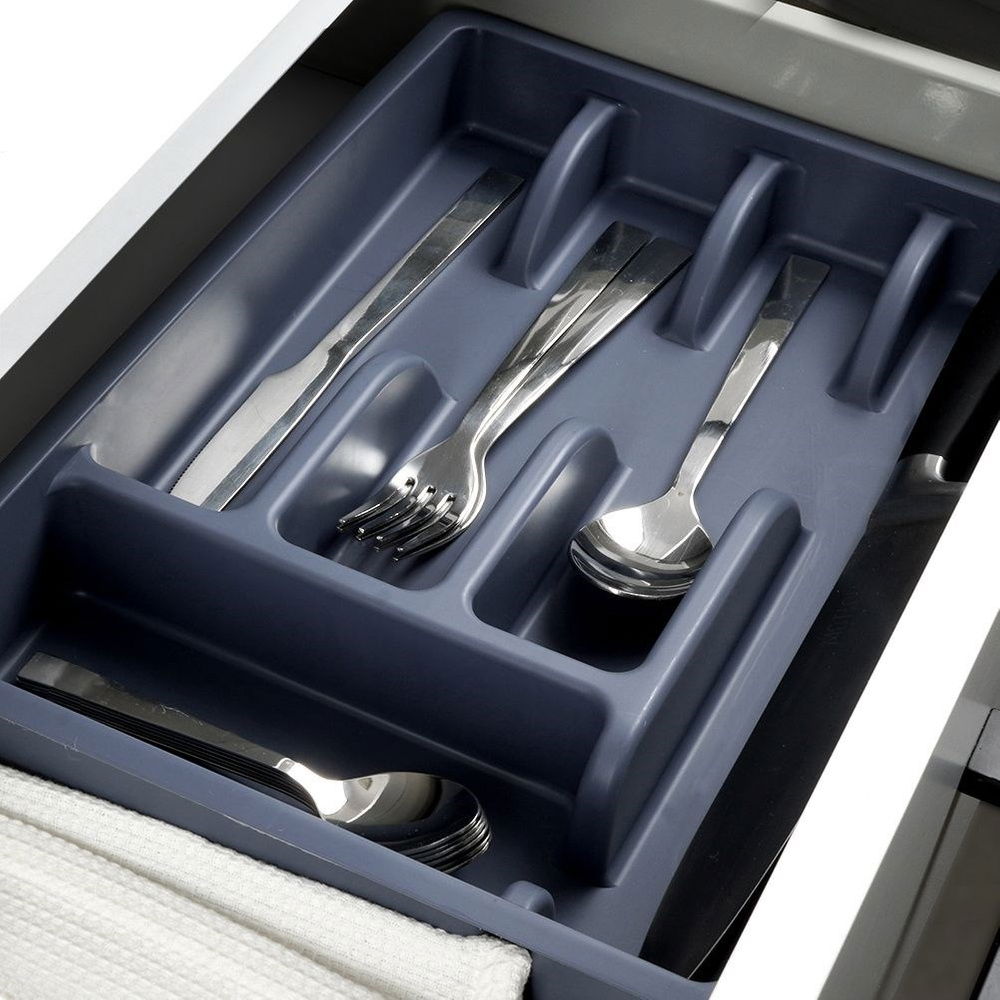 Organizer na sztućce przydatny jest w każdej kuchni. Dzięki niemu sztućce oraz przybory kuchenne będą miały swoje miejsce w szufladzie. Taca do szuflady pozwoli odpowiednio zagospodarować przestrzeń w szufladzie. Z pomocą wkładu będziemy mogli utrzymać porządek w szafkach. Wkład jest uniwersalny więc będzie pasował do każdej szuflady.