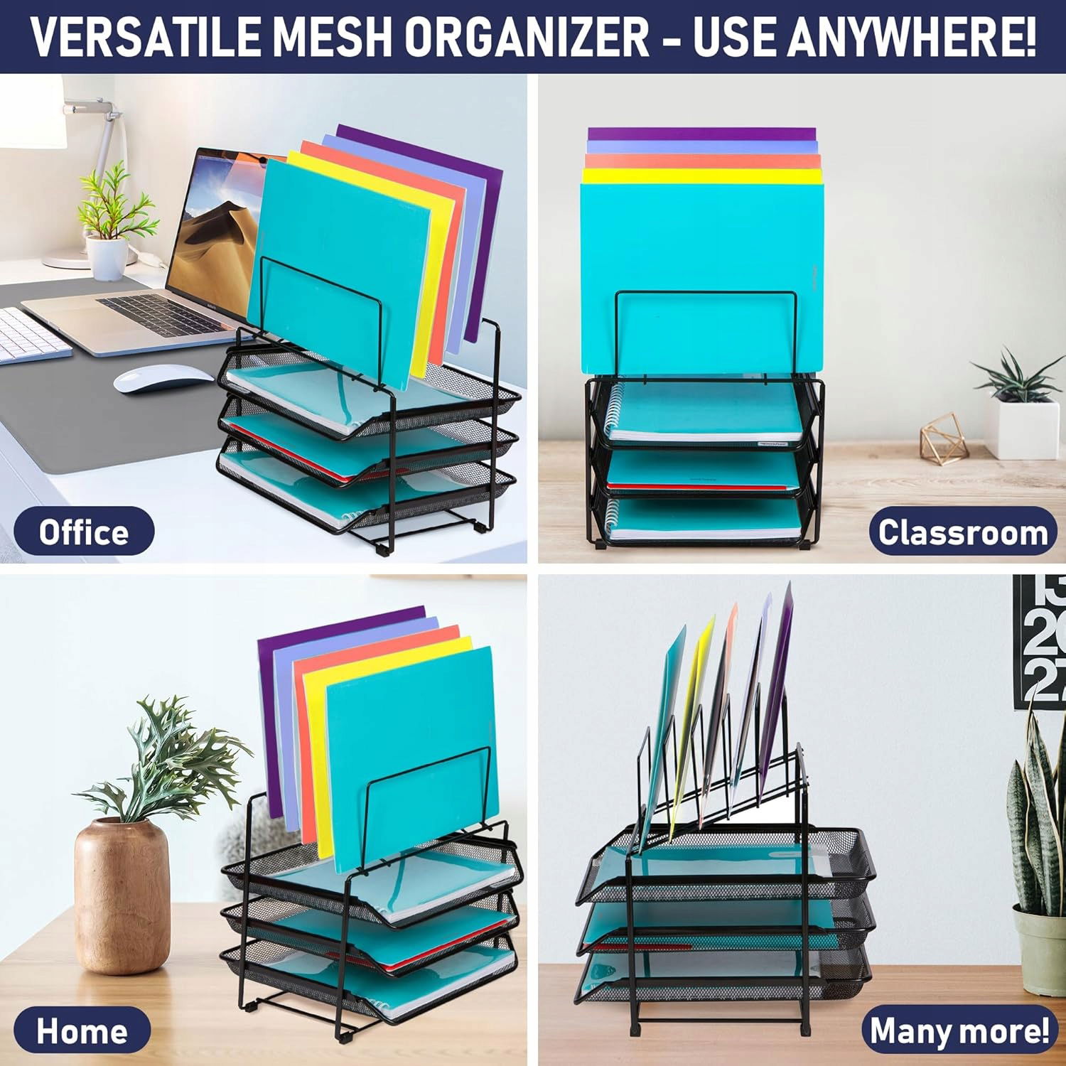 - Wielofunkcyjny – nasz piękny organizer z czarnej metalowej siatki może być również używany jako organizer na biurko. Z 3 przesuwanymi tacami i 5 pionowymi sekcjami zapewnia dużo miejsca do przechowywania rachunków, poczty, notatek, plików, folderów, segregatorów itp.