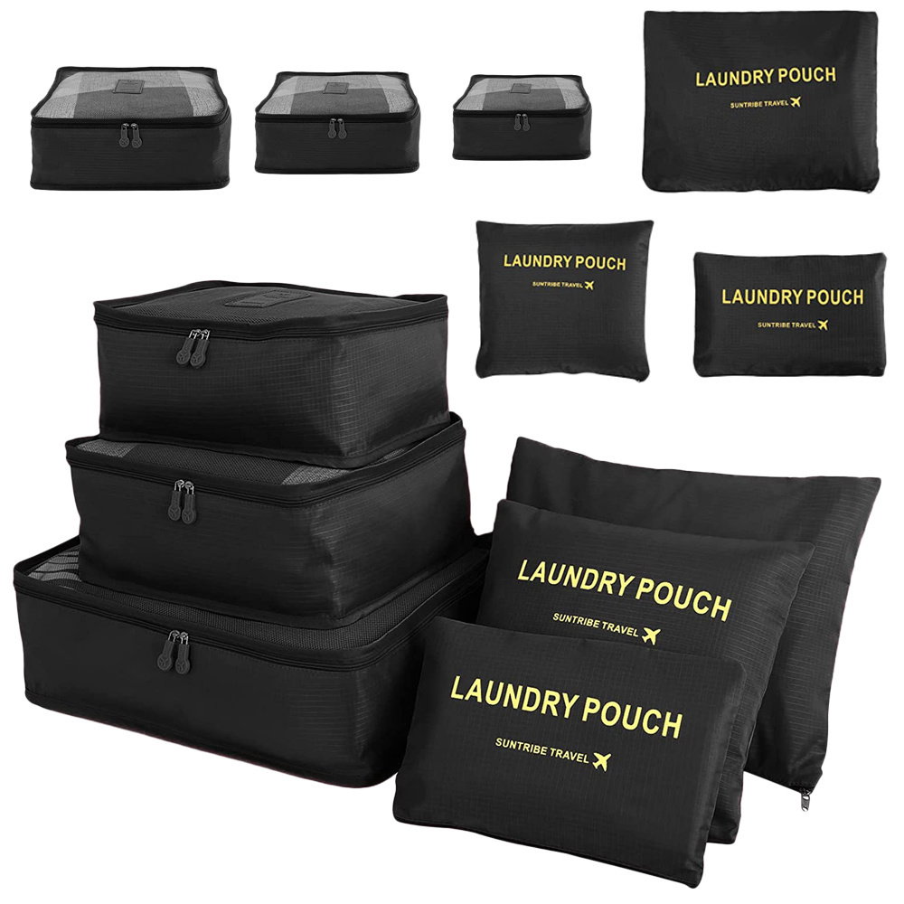 ☑️ Fabrycznie nowy komplet 6 organizerów podróżnych w kolorze czarnym