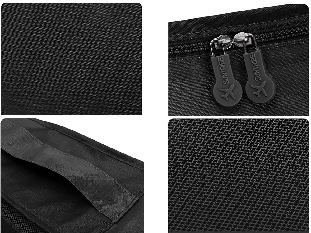 Torby są różnej wielkości, więc swobodnie można posegregować wszystkie potrzebne rzeczy na wyjazd. Trzy największe torby wyposażone są w dwustronny suwak, klapę z siateczki w celu lepszej wentylacji oraz w wygodne uchwyty. Mniejsze saszetki, wykonane z nieprzeźroczystego materiału z suwakiem idealne będą do przechowania rzeczy do prania oraz innych niezbędnych gadżetów.