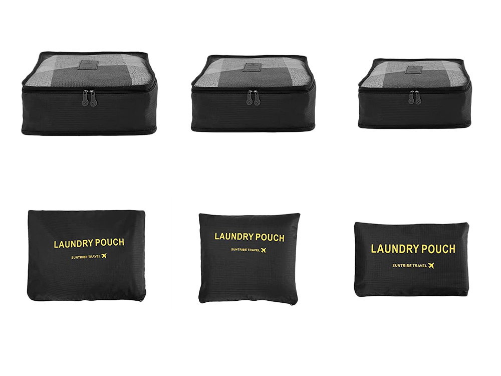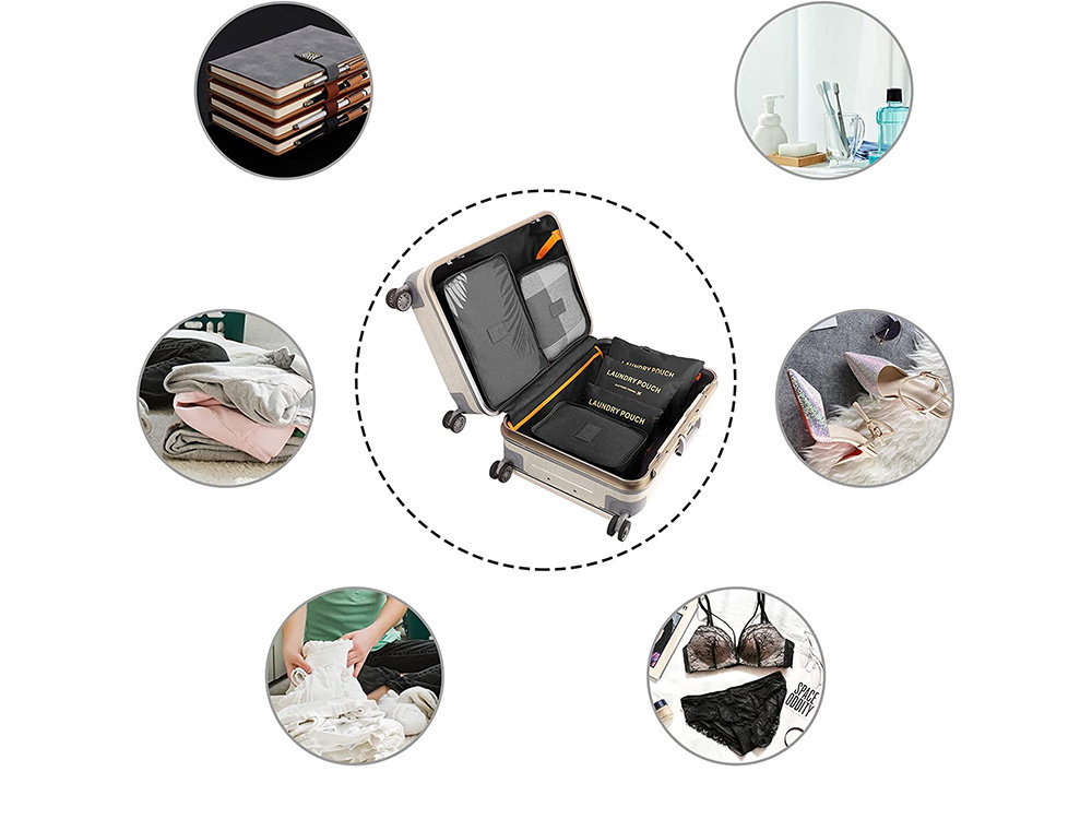 Komplet sześciu organizerów podróżnych, świetnie sprawdzi się do spakowania wszystkich potrzebnych rzeczy takich jak np: bielizna, obuwie, ubrania czy kosmetyki oraz do przechowywania bielizny do prania.
