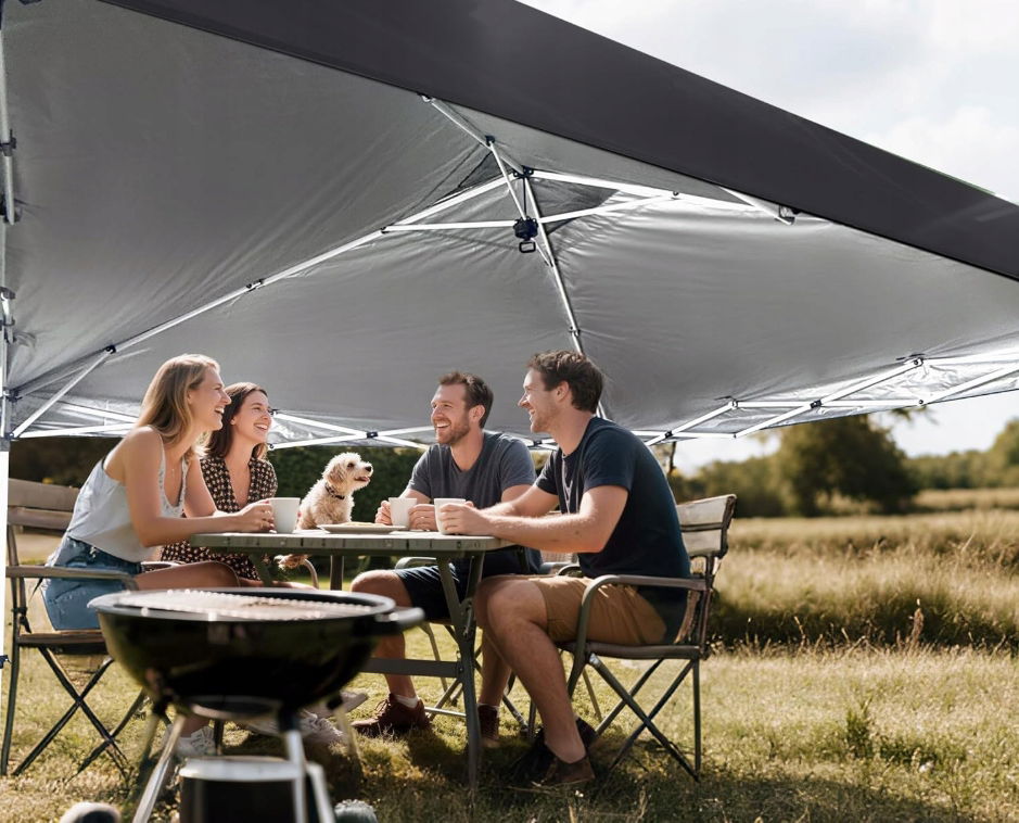 - ✴️Regulowana Wysokość i Wentylacja dla Komfortu w Każdych Warunkach Pogodowych: 3 ustawienia wysokości (249-259-269 cm) dostosowują się do potrzeb osłony przeciwsłonecznej lub przeciwdeszczowej. Górne otwory wentylacyjne uwalniają dym i ciepło z grilla, blokując jednocześnie przecieki, zapewniając przepływ powietrza bez uszczerbku dla wodoodporności.
