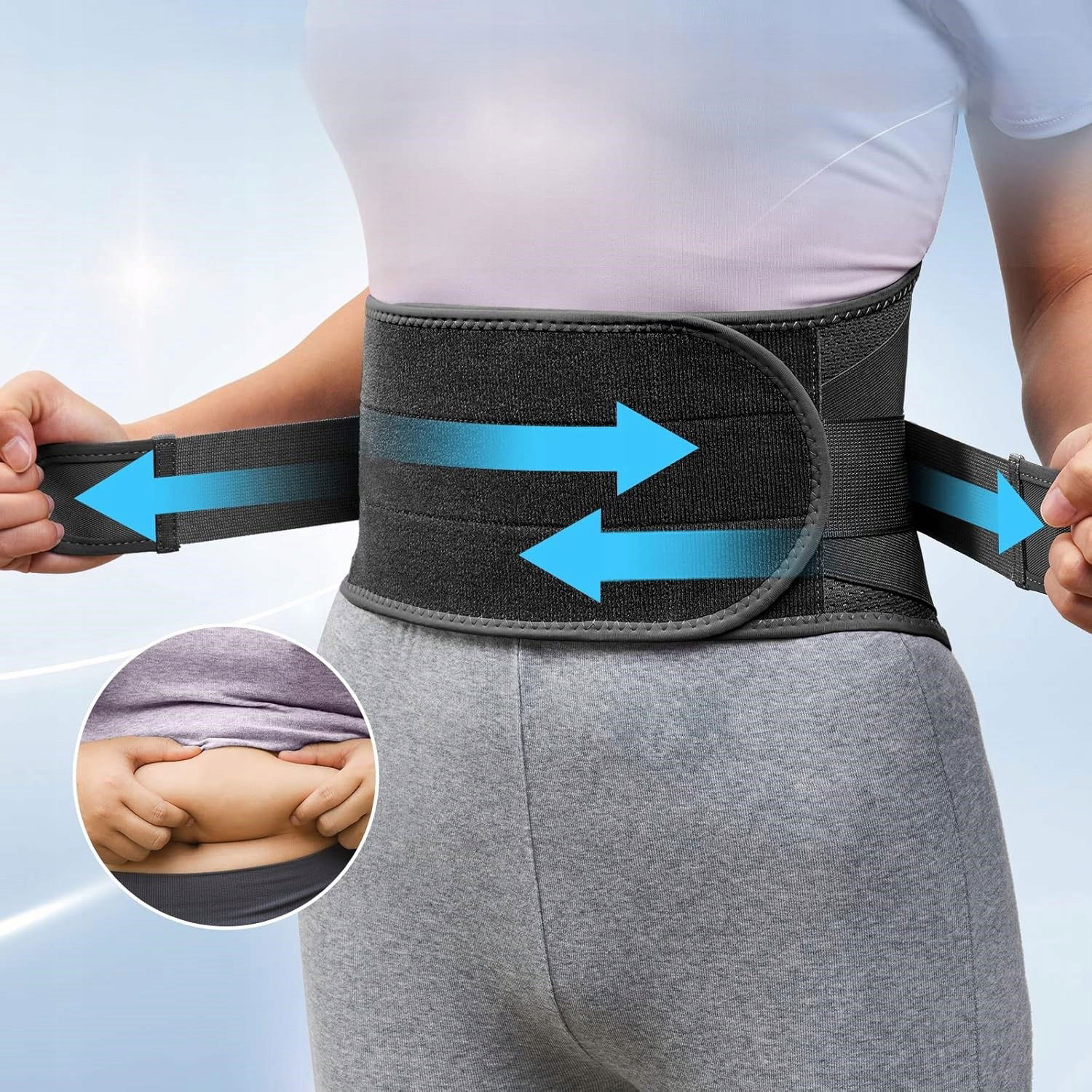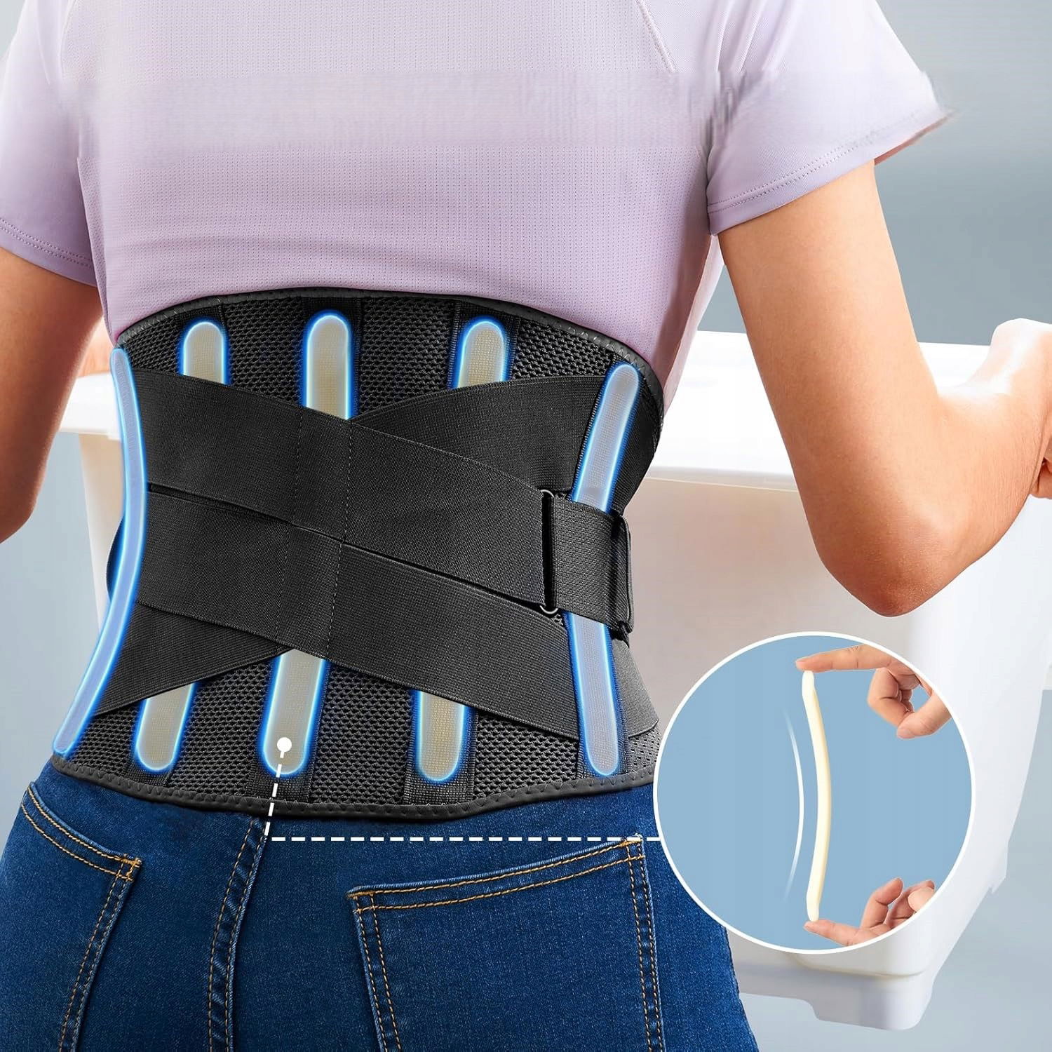 Wysoka elastyczność i wygoda: podparcie pleców FREETOO ma funkcję wysokiej elastyczności. Dodatkowy zewnętrzny pasek służy do indywidualnej regulacji nacisku i podparcia. (Aby określić prawidłowy rozmiar bandaża, zmierz obwód talii na wysokości pępka.)