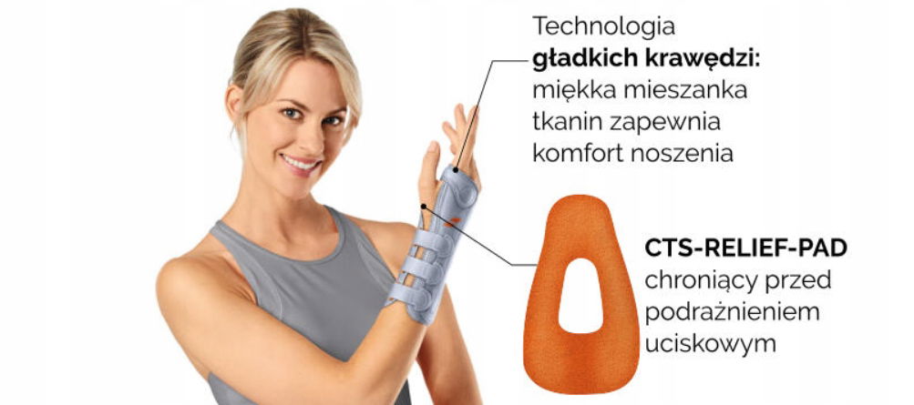 - system CTS-RELIEF-PAD: anatomicznie ukształtowany z odsłonięciem kanału nadgarstka, nerwu pośrodkowego, jednoczęściowy, ustawiany indywidualnie i wyjmowany;