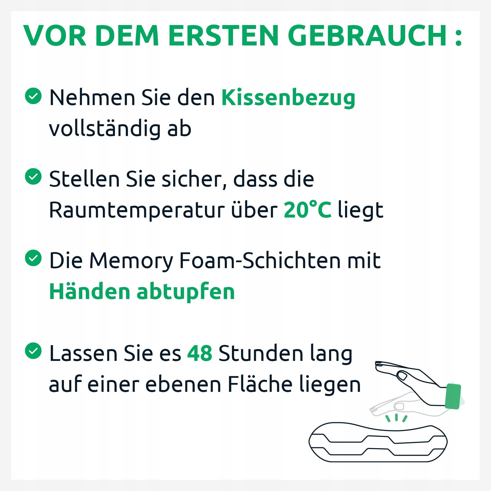 【UWAGA】 Po rozpakowaniu może wydzielać się naturalny, nietoksyczny zapach pianki. Przed pierwszym użyciem pozostaw poduszkę w dobrze wentylowanym miejscu na 24 godziny, aż osiągnie swój pierwotny rozmiar i kształt.