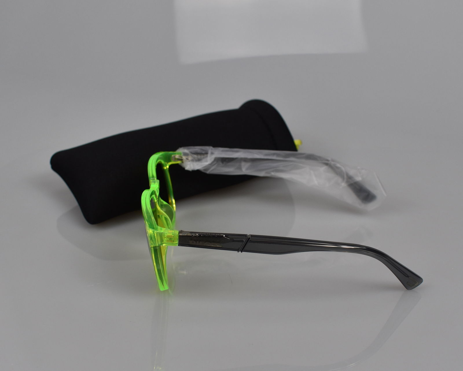 Model w kolorze żywego żółtego wyróżnia się nowoczesnym fasonem typu nerdy, charakterystycznym dla marki DIESEL – łączącym zabawny styl z wysoką jakością wykonania.