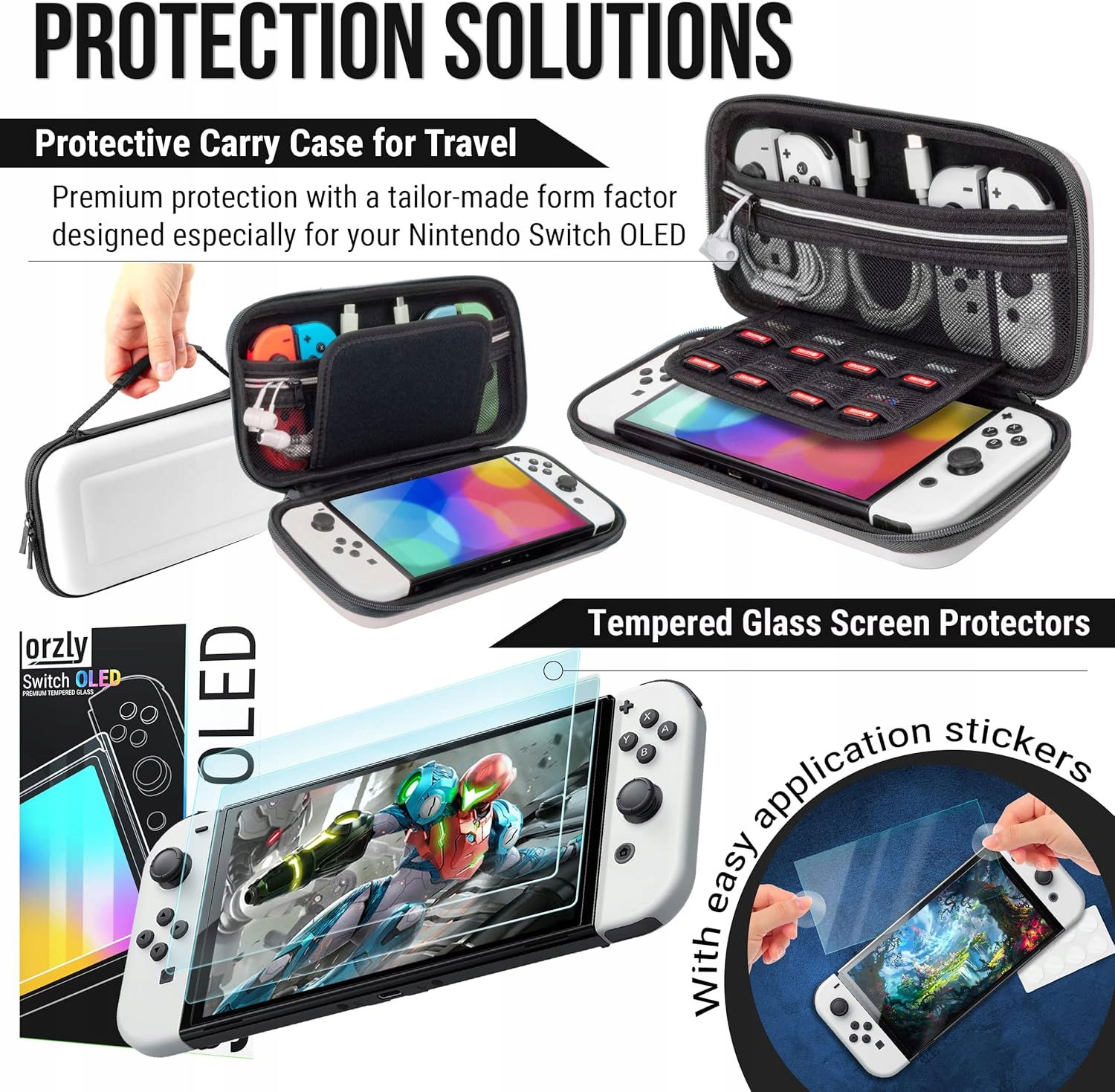 - Zestaw akcesoriów zawiera etui do przenoszenia Orzly | zestaw ochronny na ekran | etui Comfort Grip | uchwyty do kontrolera Joycon | koła wyścigowe Joycon | stojak do zabawy | najlepsza stacja ładująca i nie tylko