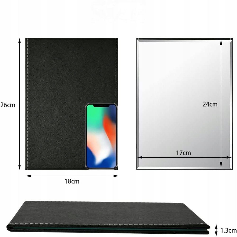OSDUE Składane lusterko stołowe z ekoskóry 18 × 26 cm - elegancja