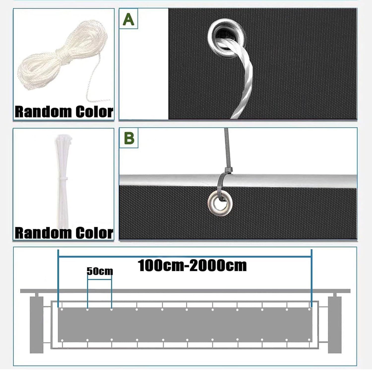 Prosty montaż bez wiercenia dzięki dołączonym opaskom kablowym. Aluminiowe oczka rozmieszczone co 50 cm zwiększają stabilność i łatwość instalacji. Idealne rozwiązanie dla balkonów i tarasów.