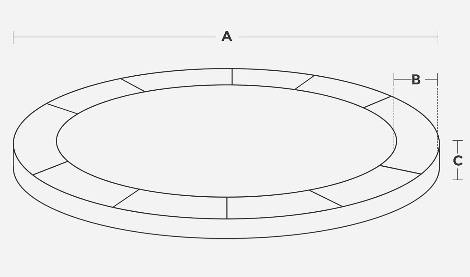 Długotrwała trwałość: Przy odpowiedniej pielęgnacji nie powinieneś musieć wymieniać poduszki bezpieczeństwa co sezon. Dzięki wytrzymałemu pokrowcowi odpornemu na wodę i promieniowanie UV PVC (500D) o gramaturze 310 g/m², piance EPE o grubości 1,5 cm, wysokiej jakości dnu z PE o gramaturze 130 g/m² i specjalistycznym szwom, ta podkładka sprężynowa została zaprojektowana z myślą o trwałości.