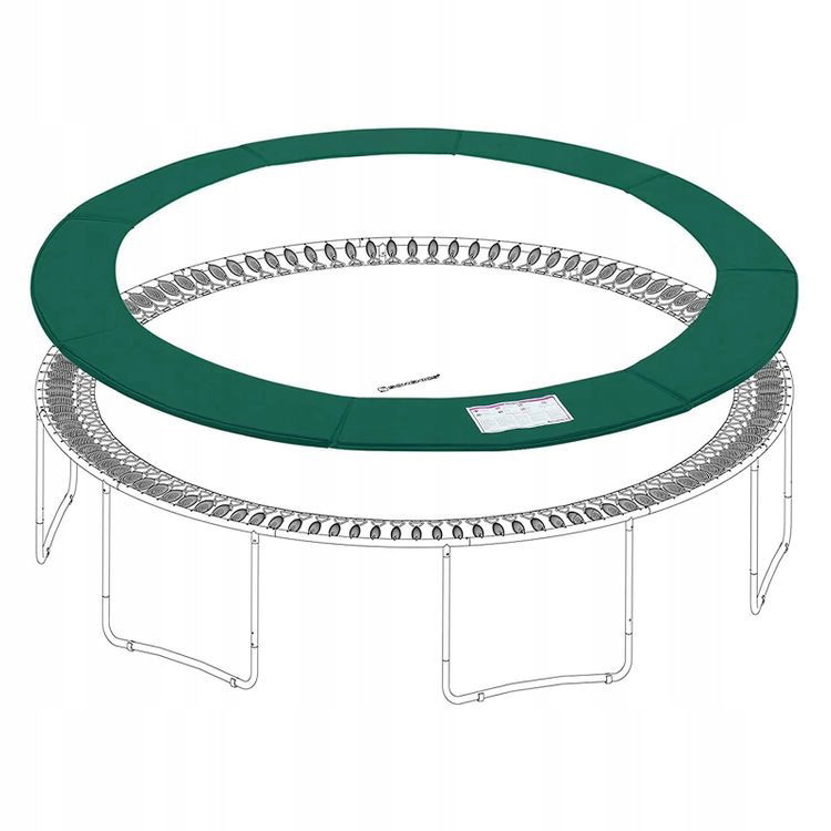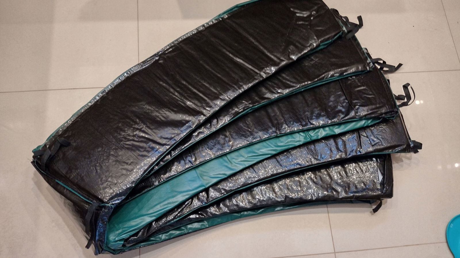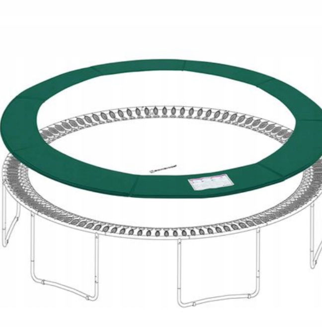 - Górne materiały: Ta pokrywa krawędzi trampoliny składa się z powierzchni PVC o gramaturze 310 g/m² (500D), pianki EPE o grubości 15 mm i wysokiej jakości PE o gramaturze 130 g/m² na spodzie. Wysoka jakość? Oczywiście!