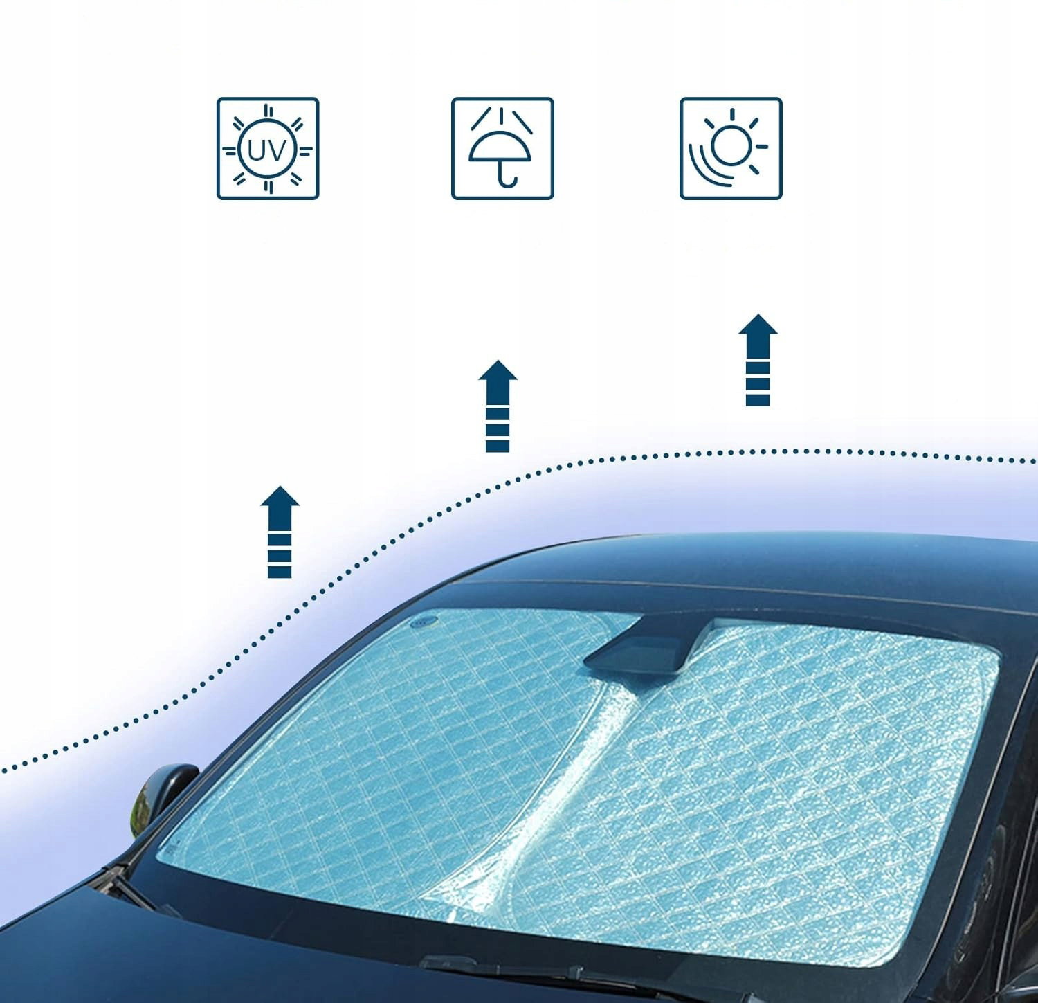 Osłona przeciwsłoneczna na przednią szybę skutecznie chroni wnętrze pojazdu przed nadmiernym nagrzewaniem i promieniowaniem UV.