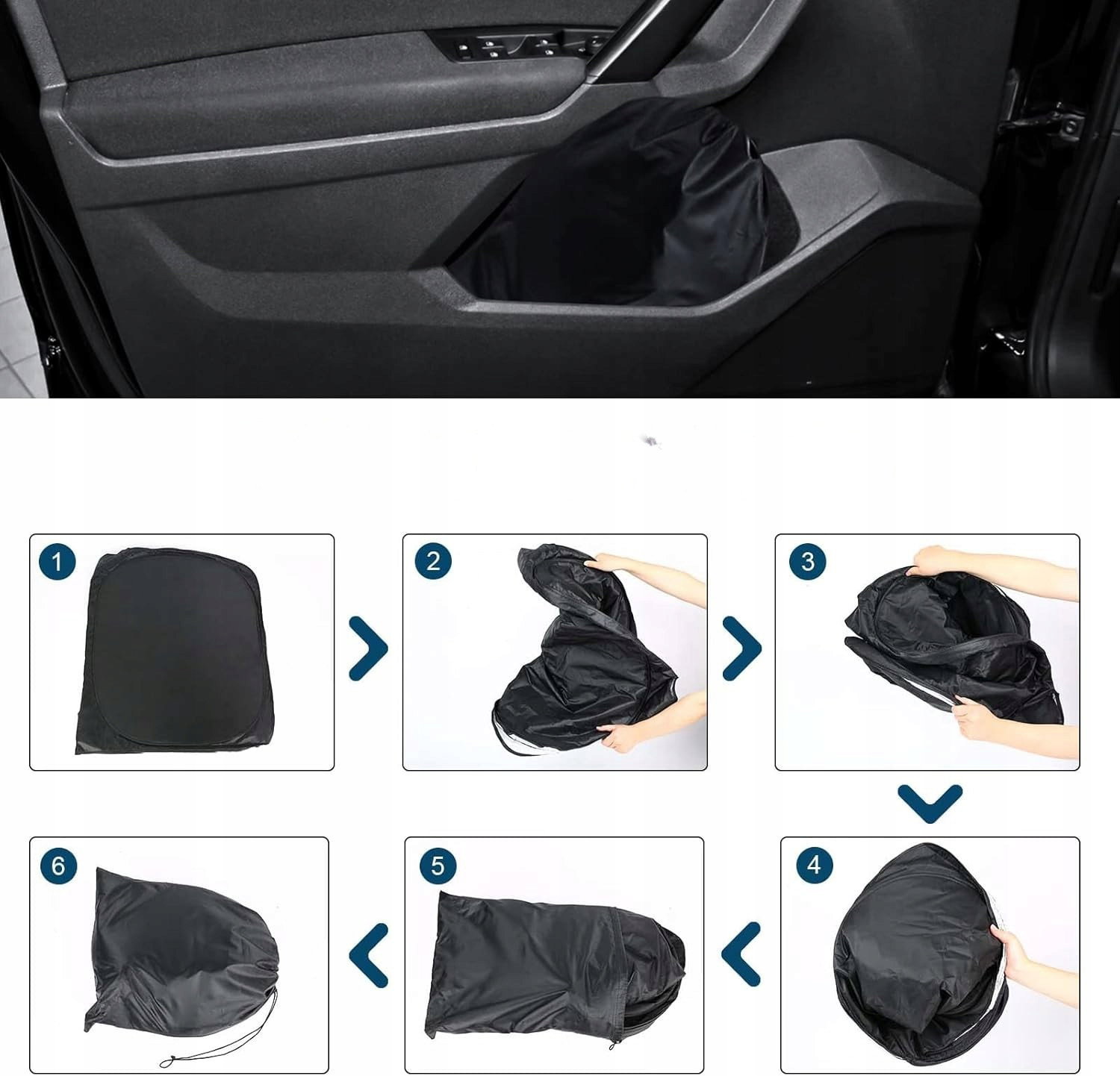 - Łatwość montażu i przechowywania: osłona jest składana i po zwolnieniu wraca do pierwotnego kształtu, co ułatwia codzienne użytkowanie. Montaż polega na szybkim rozłożeniu i umieszczeniu na szybie bez użycia narzędzi. Po złożeniu zajmuje niewiele miejsca i może być przechowywana w schowku lub drzwiach auta.