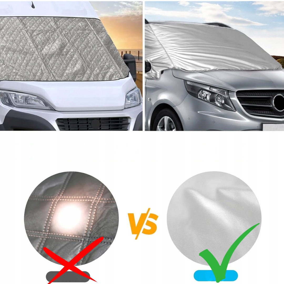 - Zastosowanie: osłona przedniej szyby kompatybilna z Mercedes-Benz Vito W447 chroni wnętrze pojazdu przed nadmiernym nagrzewaniem latem i utratą ciepła zimą, a także zwiększa prywatność. Montaż jest prosty dzięki bocznym klapom i zamknięciom wokół lusterek, które utrzymują osłonę na miejscu.