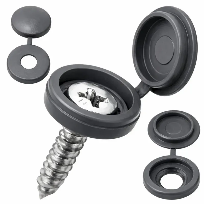 Osłony na śruby w kolorze ciemnym szarym to praktyczne rozwiązanie do estetycznego maskowania łbów wkrętów i śrub.