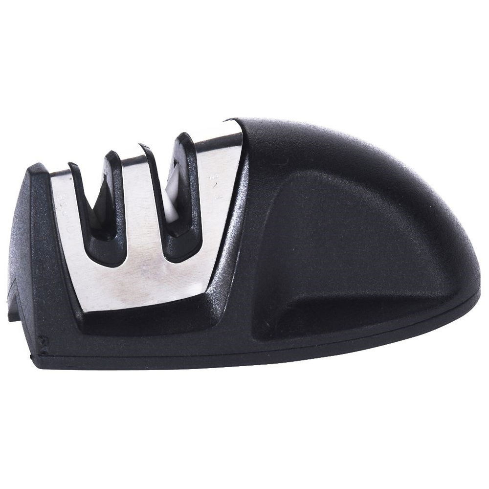 PRAKTYCZNA - Ostrzałka posiada dwie głowice: węglową do ostrzenia oraz ceramiczną do polerowania. Nadaje się do prostych noży kuchennych, np. szefa kuchni.