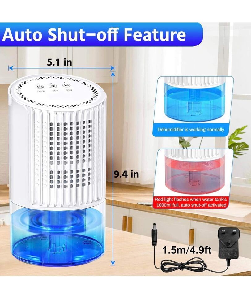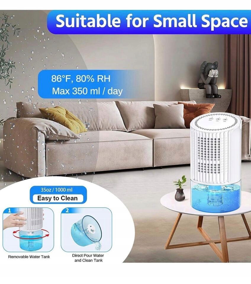 - * Małe osuszacze o kompaktowej konstrukcji: Rozmiar: 5,2 "gł. x 5,2" szer. x 9 "wys.Ten osuszacz pokojowy z ergonomicznym uchwytem, łatwy do umieszczenia w dowolnym miejscu. Lekkie i przenośne, te osuszacze do domu można umieścić w różnych przestrzeniach, takich jak sypialnia, łazienka, biuro, kuchnia, garaż, kamper, salon przy innych okazjach.