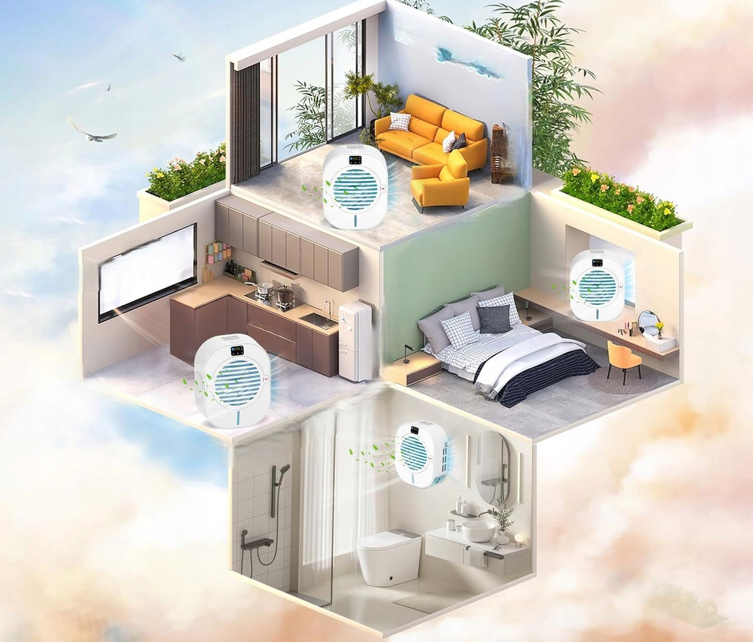 🛁 Łazienka – eliminuje wilgoć i zapobiega powstawaniu pleśni.