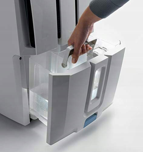 - Przezroczysty zbiornik umożliwia łatwe sprawdzanie wydajności osuszacza oraz poziomu wody w dowolnym momencie użytkowania