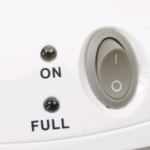 Prezentowany elektryczny osuszacz powietrza jest lekki, a jego praca cicha. Dużą zaletą jest to, że automatycznie wyłącza się po napełnieniu zbiornika - informuje nas o tym poprzez diodę sygnalizacyjną LED.
