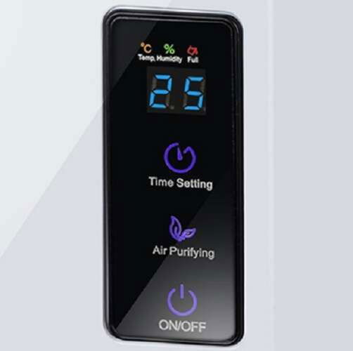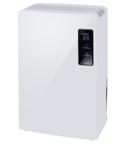 - SPECYFIKACJA - kolor: biały; materiał: ABS+ aluminum + AS+ PVC; wyświetlacz: LCD, pokazuje: temperaturę i wilgotność; timer: 24 - godzinny; 2w1 oczyszczanie i osuszanie powietrza; możliwość pracy w temperaturze poniżej 0: tak do -5oC; funkcja automatycznego odszraniana; wielkość pomieszczenia: do 30m2; oczyszczanie: do rozkładu zanieczyszczeń z powietrza wykorzystuje technologię oczyszczania światłem UV i dwutlenkiem tytanu (TiO2); poziom hałasu: 40 dB; wydajność osuszania: do 700 ml na dzień przy 25oC i 85% wilgotności; pojemność zbiornika na wodę: 1800ml; możliwość odprowadzenia wody przez wężyk: tak; napięcie: 220-240V; moc: 90W; automatyczne wyłączanie po napełnieniu zbiornika: tak; tryb pracy: w o parciu o system Peltiera; odpowiedni do: domu, biura itp; wyjmowany zbiornik na wodę; wymiary: 36,5/13,7/24,5cm; długość wężyka: 100cm; długość kabla: 1,30m; waga: 2,382kg; waga w opakowaniu: 2,781kg.