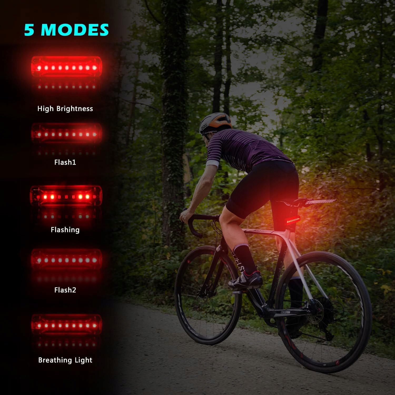 【Tylne światło LED z migającym światłem】Tylne światło rowerowe przyjmuje model 2835 koralików lamp o wysokiej jasności, 5 trybów oświetlenia: wysoka jasność, lampa błyskowa 1, kierunkowskaźnika, lampa błyskowa 2, światła oddychające spełniają wszystkie nasze potrzeby. Maksymalna widoczność może osiągnąć 1500 metrów, zapewniając bezpieczeństwo jazdy na rowerze. Wbudowany akumulator o dużej pojemności 1200 mAh może świecić przez 50 godzin i 2,5 godziny, aby go w pełni naładować.