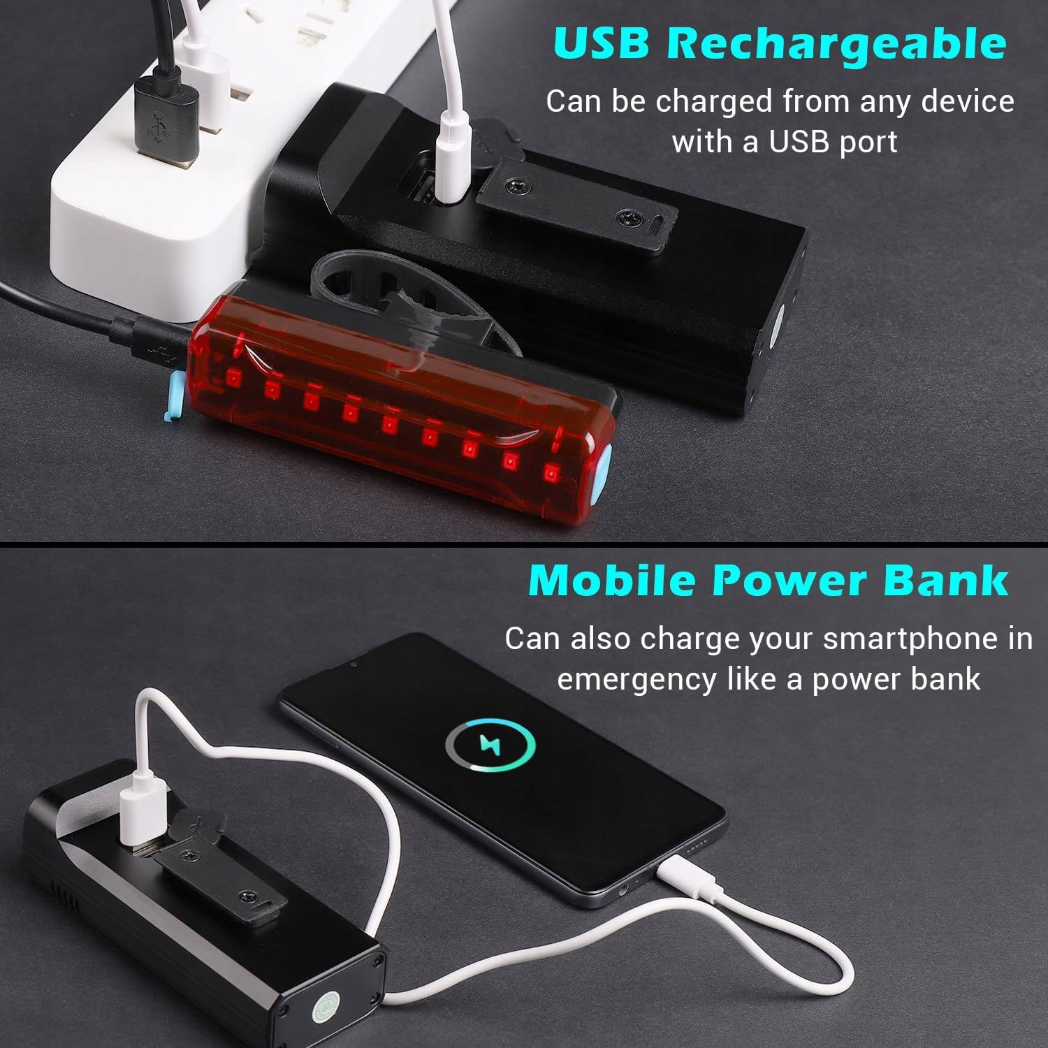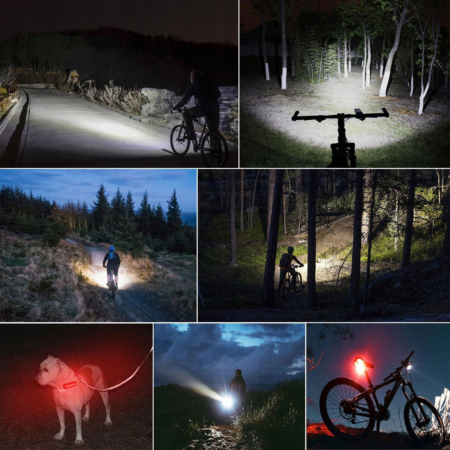 6 bardzo wysokiej jasności diod LED: różni się od większości lamp rowerowych dostępnych na rynku, nasze najnowsze oświetlenie rowerowe wykorzystuje 6 bardzo wysokiej jasności diod LED o łącznie 8000 lumenów, dzięki czemu oświetlenie do 500 metrów, znacznie poprawia widoczność w nocy i pozwala nam z wyprzedzeniem obserwować stan dróg. Ponadto 5 trybów oświetlenia (wysoka, średnia i niska jasność, miganie, SOS) może zaspokoić nasze różne potrzeby.