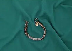 Wykończenie 14-karatowym złotem sprawia, że ​​biżuterię tę można łatwo łączyć z innymi bransoletkami lub pierścionkami.