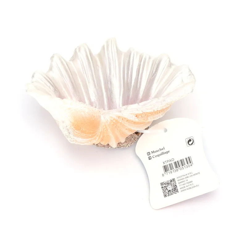 Otwarta muszla, ozdoba do dekoracji akwarium. Bez norki dla rybek, do wkomponowania miedzy roślinność lub na pierwszy plan. Dekoracja do postawienia na dnie akwarium.