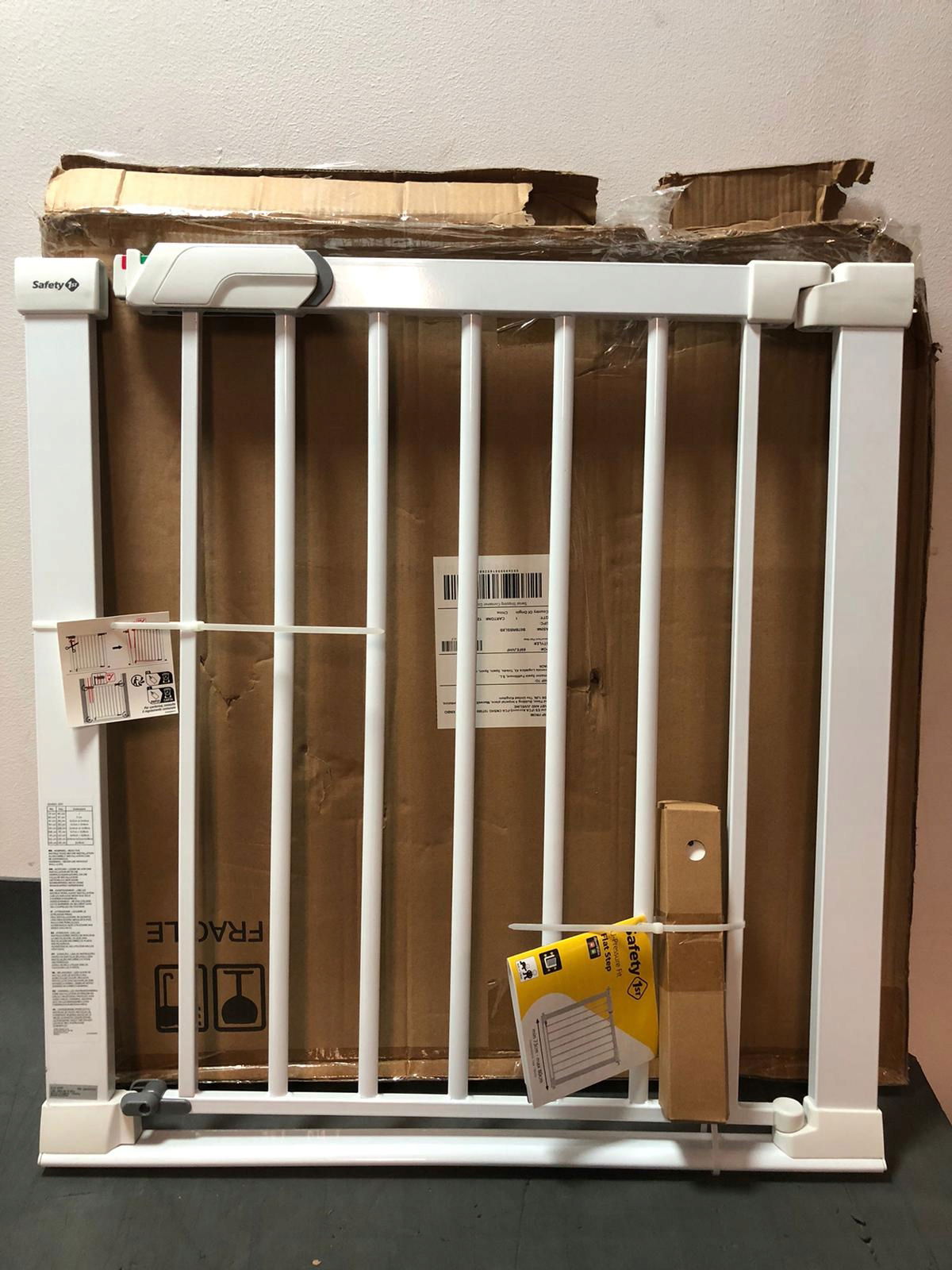 - Bramka ochronna, która dopasowuje się do otworów od 73 cm do 80 cm i może być przedłużona do 101 cm za pomocą oddzielnych przedłużek (7 cm)