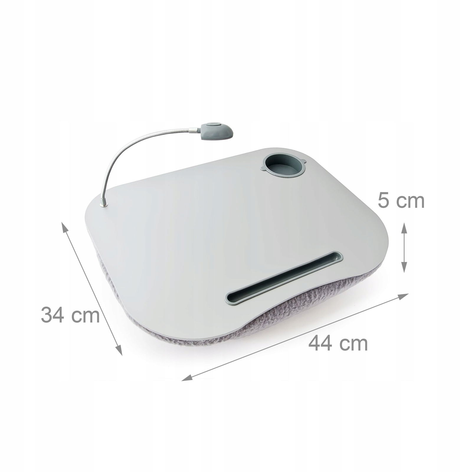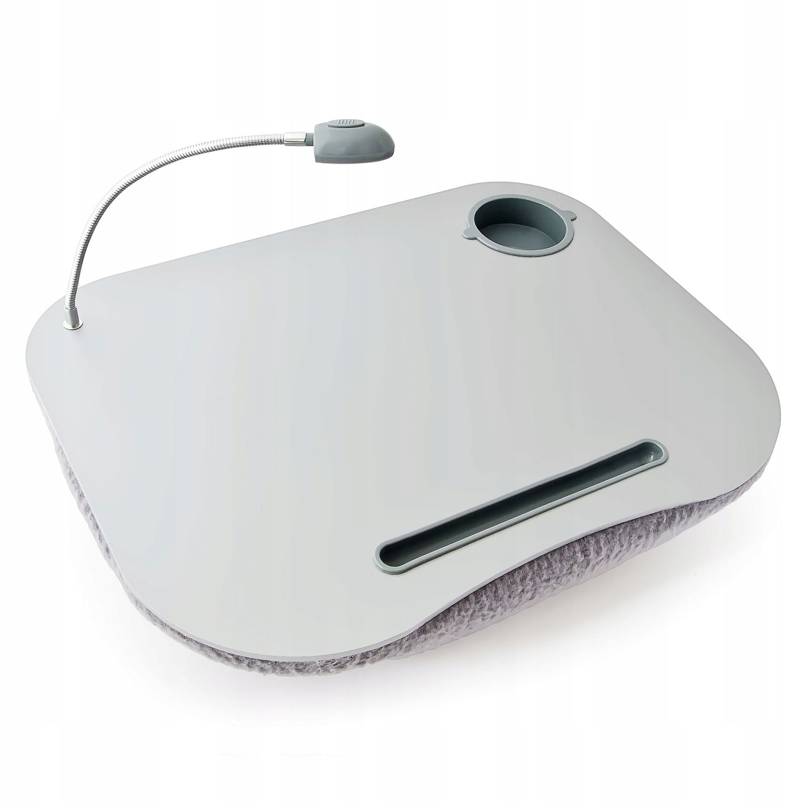 Szary stolik na laptopa z poduszką