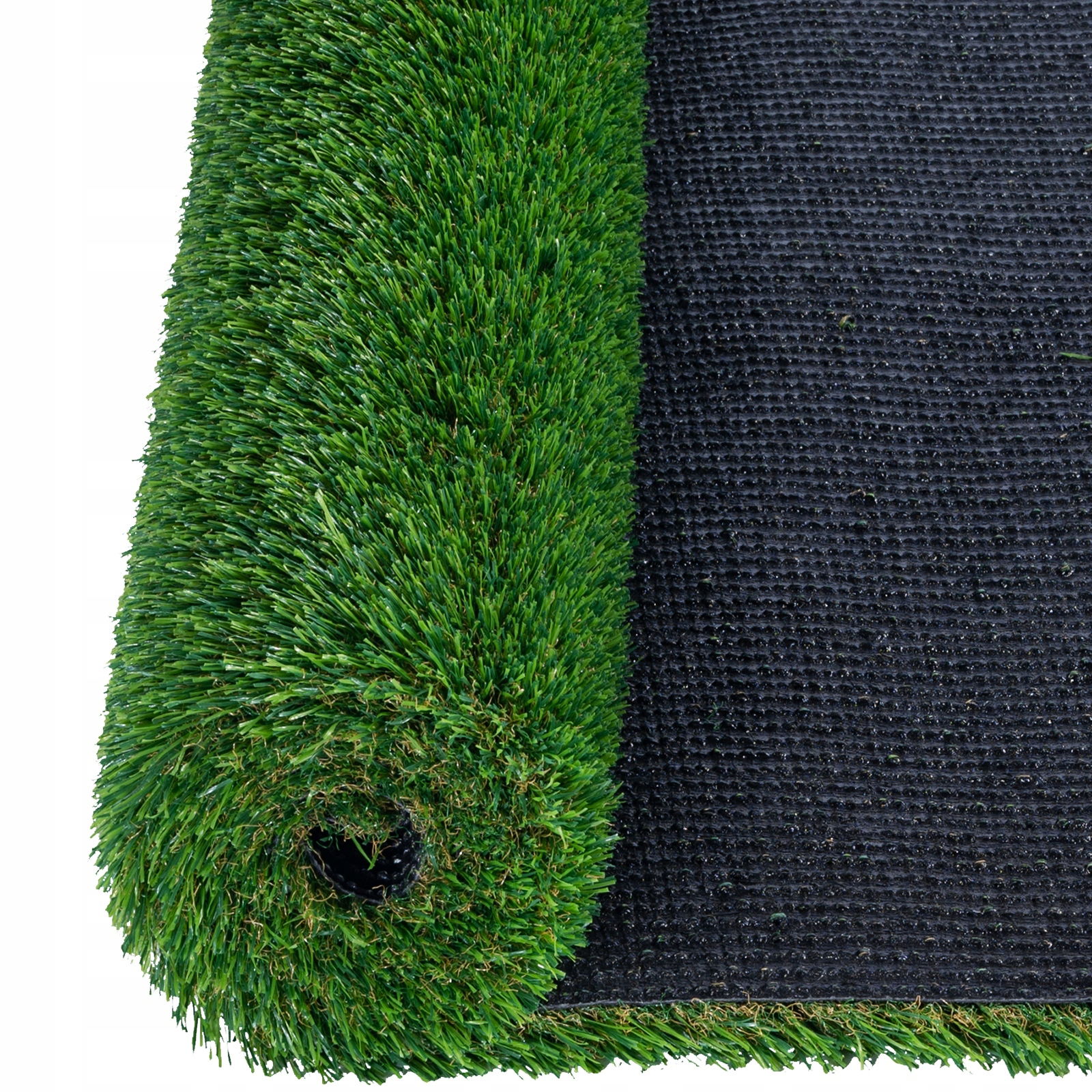 - Łatwość konserwacji: czyszczenie tej sztucznej trawy odbywa się po prostu strumieniem wody. Ponadto przebijana czarna lateksowa podstawa sprawia, że jest ona przepuszczająca wodę, dzięki czemu nie tworzą się kałuże.