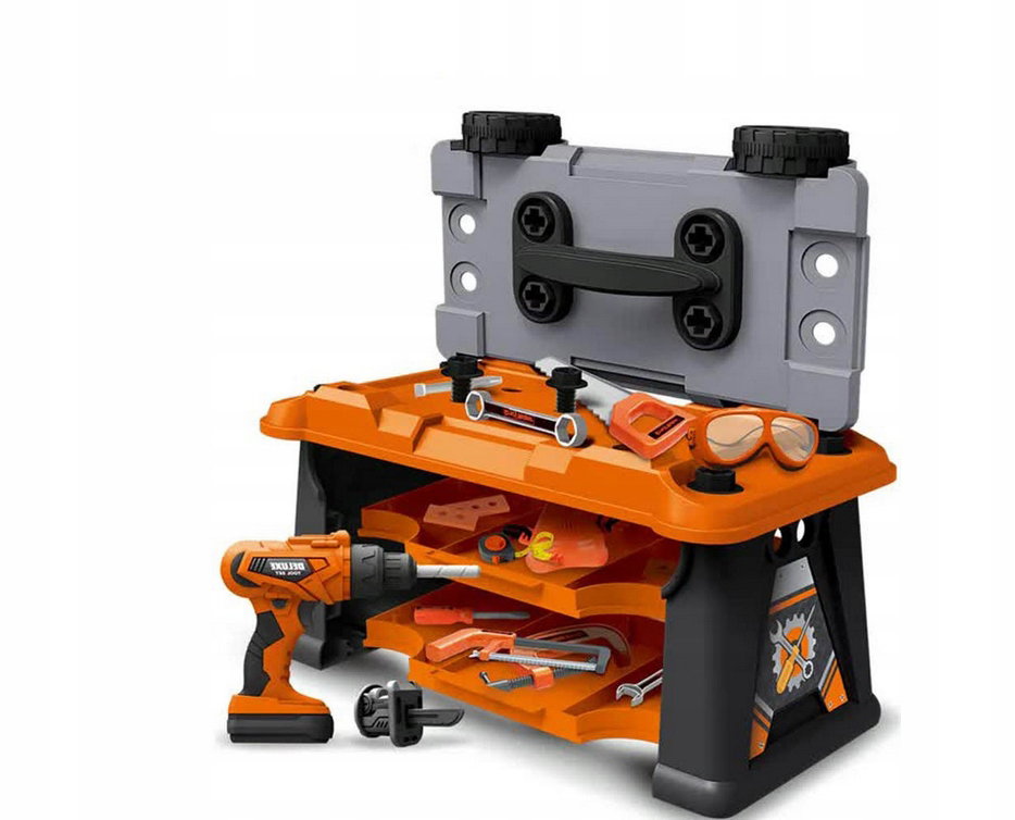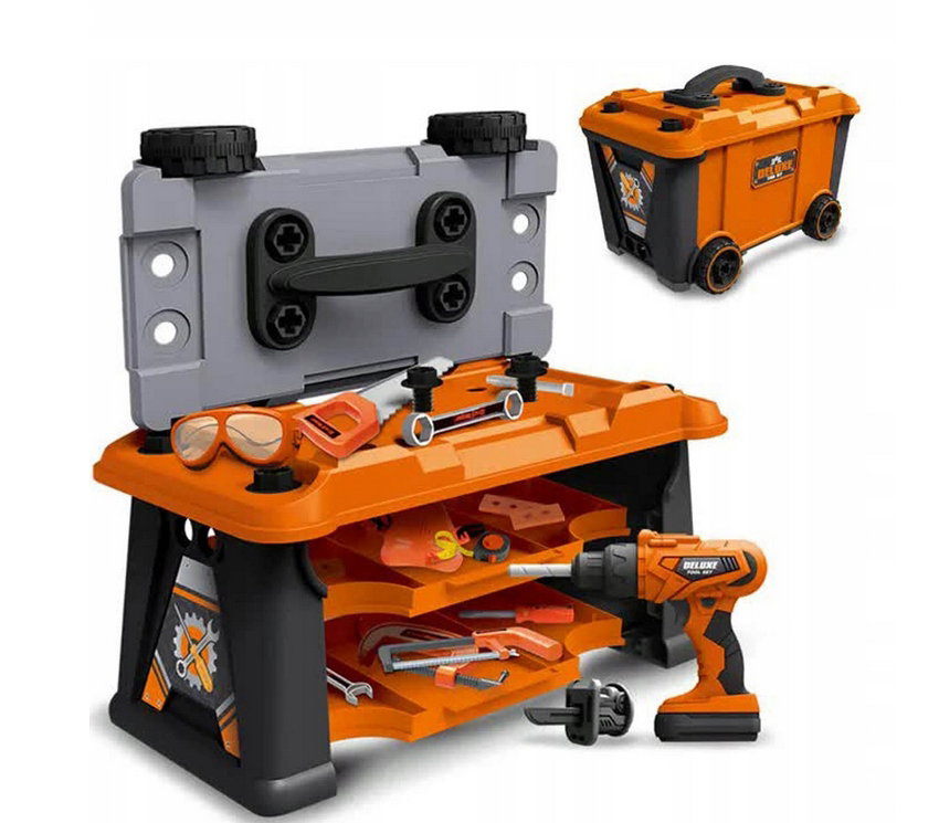 Funkcjonalna skrzynka narzędziowa, która po rozłożeniu zamienia się w praktyczny stół warsztatowy – miejsce do pracy dla każdego małego majsterkowicza!