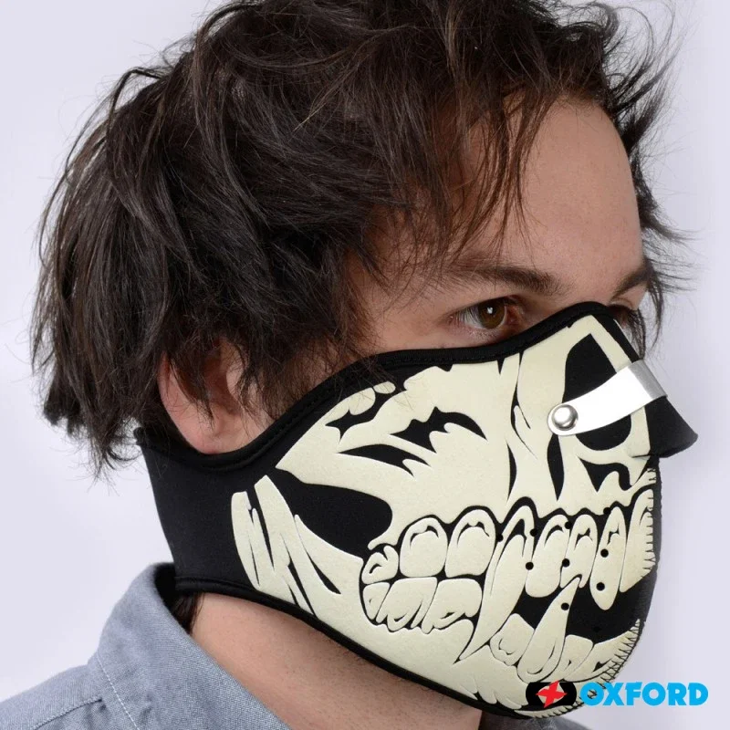 Zasady bezpieczeńśtwa i użytkowania: OXFORD MASKA NEOPRENOWA POD KASK OSŁANIAJĄCA TWARZ Z FLUORESCENCYJNYM MOTYWEM CZASZKI kod ean 5030009146299