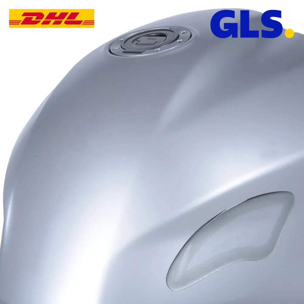 - Montaż musi odbywać się na idealnie odtłuszczonej powierzchni w temperaturze powyżej $20°C$. Po naklejeniu stompgripów należy odczekać minimum $24-48$ godzin przed pierwszą jazdą, aby klej akrylowy uzyskał pełną siłę wiązania z lakierem zbiornika.