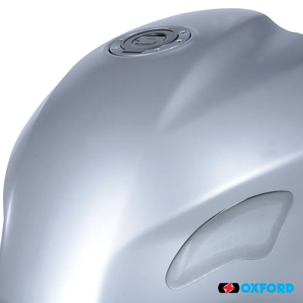 Naklejki zabezpieczające boki zbiornika marki Oxford (kod OX645). Produkt przeznaczony do ochrony powierzchni zbiornika paliwa. Komplet zawiera naklejki w kolorze przeźroczystym. Maksymalne wymiary: 19,5 x 9,5 cm.
