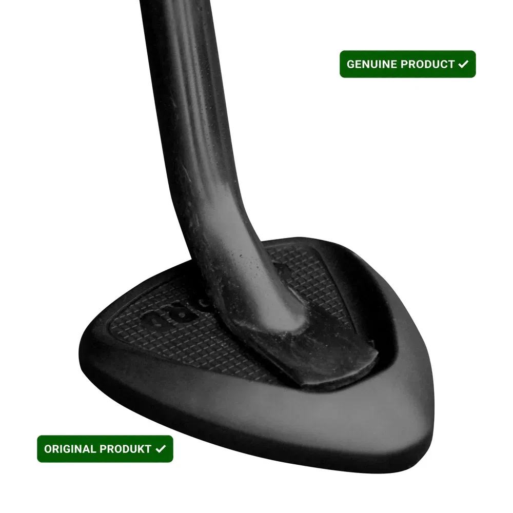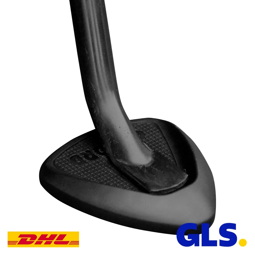 - Po zamontowaniu poszerzenia należy kilkukrotnie złożyć i rozłożyć stopkę, sprawdzając, czy element nie koliduje z żadną ruchomą częścią motocykla (wahaczem, stopką centralną, rurą wydechową).