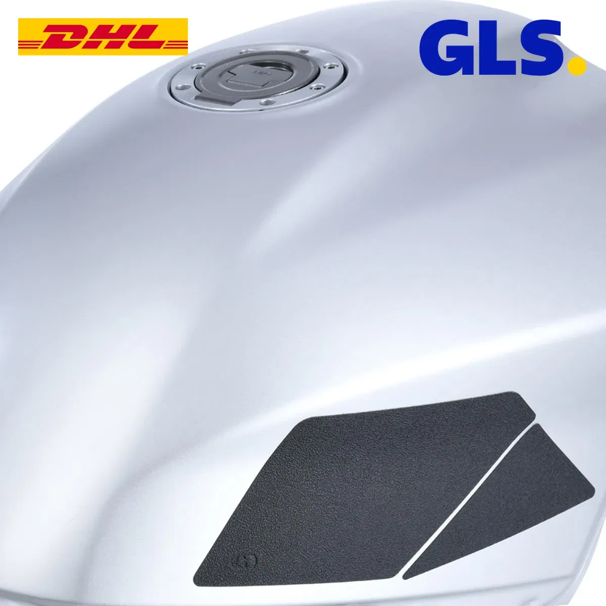 - Montaż musi odbywać się na idealnie odtłuszczonej powierzchni w temperaturze powyżej $20°C$. Po naklejeniu stompgripów należy odczekać minimum $24-48$ godzin przed pierwszą jazdą, aby klej akrylowy uzyskał pełną siłę wiązania z lakierem zbiornika.