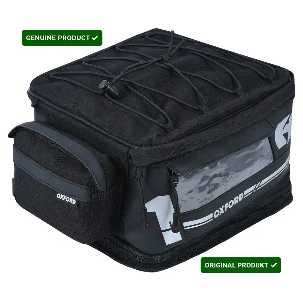 18-litrowa torba na tył motocykla z serii Oxford F1 to doskonały wybór dla osób poszukujących produktu w przystępnej cenie, oferującego jednocześnie jakość renomowanej marki. Wykonana z niezwykle wytrzymałego materiału Rip-Stop. Wnętrze wykończono nylonową podszewką. Wewnątrz umieszczono wyjmowany, wodoodporny worek. Torba dostępna jest w uniwersalnym czarnym kolorze, a jej elementy odblaskowe zwiększają widoczność motocykla, poprawiając bezpieczeństwo na drodze. W komplecie znajdziesz wkładki kolorystyczne w pięciu wariantach: srebrnym, czerwonym, niebieskim, pomarańczowym i zielonym. Dzięki temu możesz dopasować kolorystyczny akcent torby do stylistyki swojego motocykla. Seria F1 stanowi ekonomiczną alternatywę dla linii Lifetime. Produkty serii F1 wykorzystują bogate doświadczenie firmy Oxford w projektowaniu i produkcji systemów bagażowych. W ofercie znajdują się produkty różnego typu, pasujące do wielu modeli motocykli. Produkt otrzymał pozytywną recenzję od opiniotwórczego, angielskiego magazynu „Ride Magazin”.