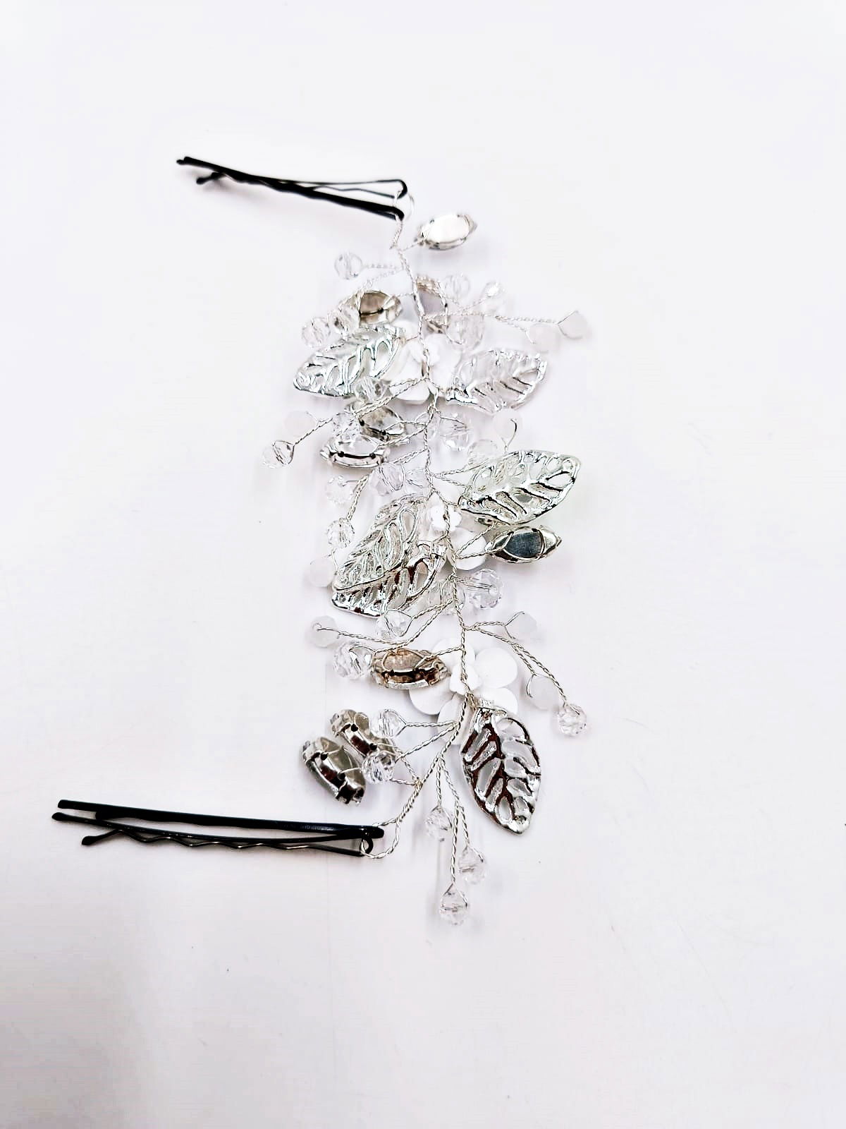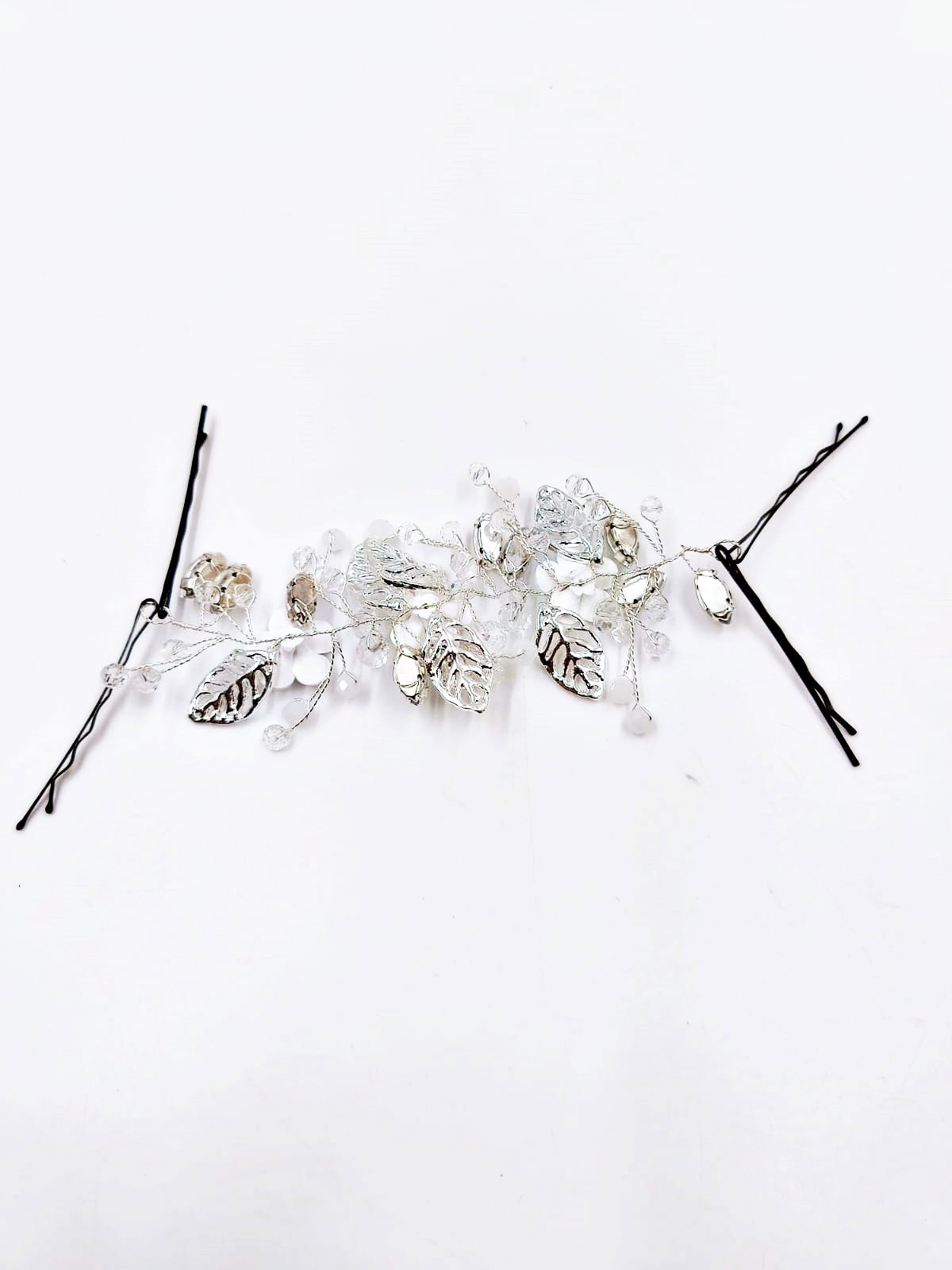 Dodaj wyjątkowy akcent do swojej ślubnej stylizacji dzięki tej pięknej srebrnej ozdobie do włosów na wsuwkach. Stworzona z myślą o pannie młodej, która pragnie podkreślić swoją delikatność i wyjątkowość w dniu ślubu.