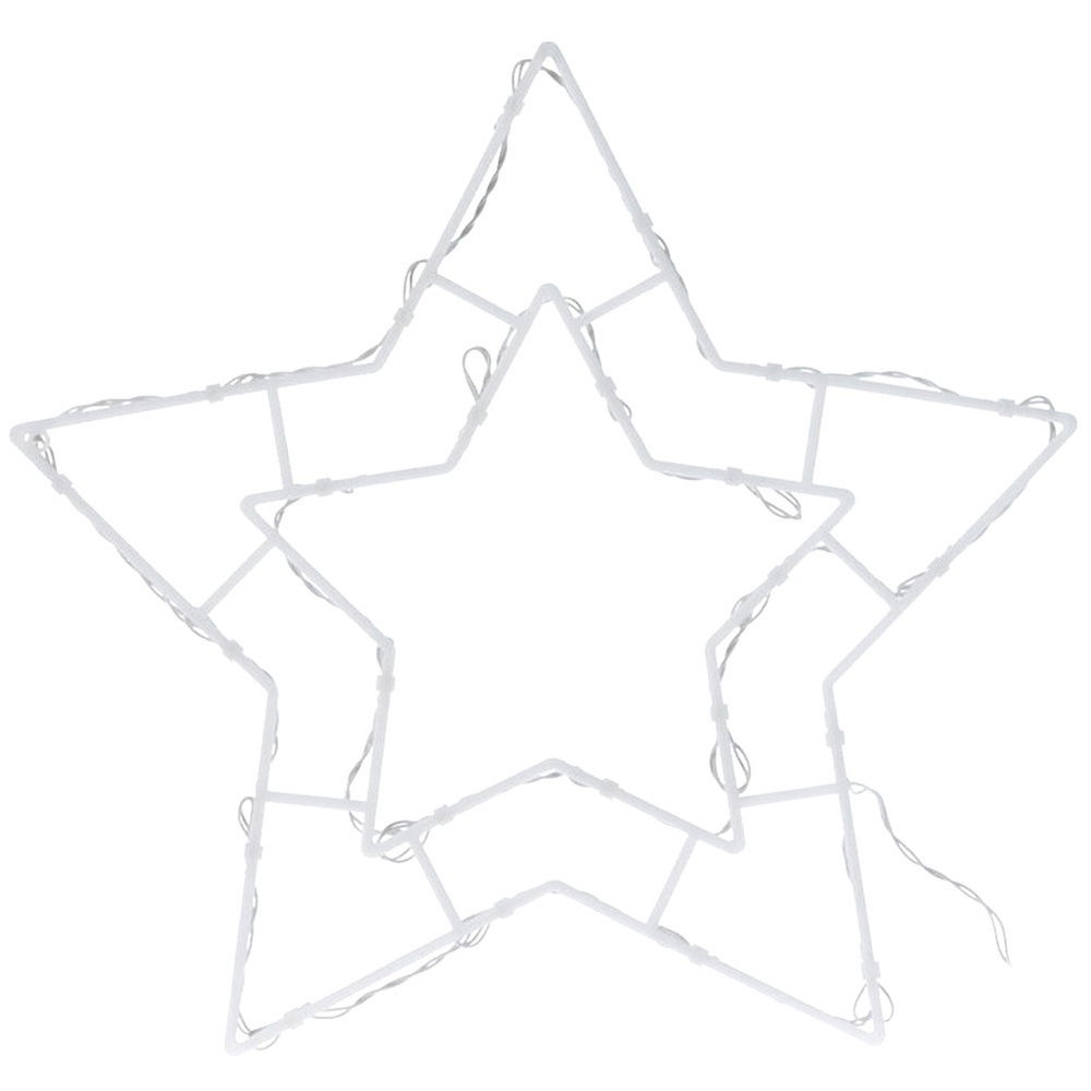 Świecąca gwiazda dekoracyjna na okno - Świąteczna dekoracja w kształcie gwiazdy o wymiarach 41 x 39 cm, przeznaczona do zawieszenia na okno lub np. ścianę. Ozdoba jest podświetlana 24 diodami LED o ciepłej, białej barwie, tworząc elegancką, bożonarodzeniową atmosferę.