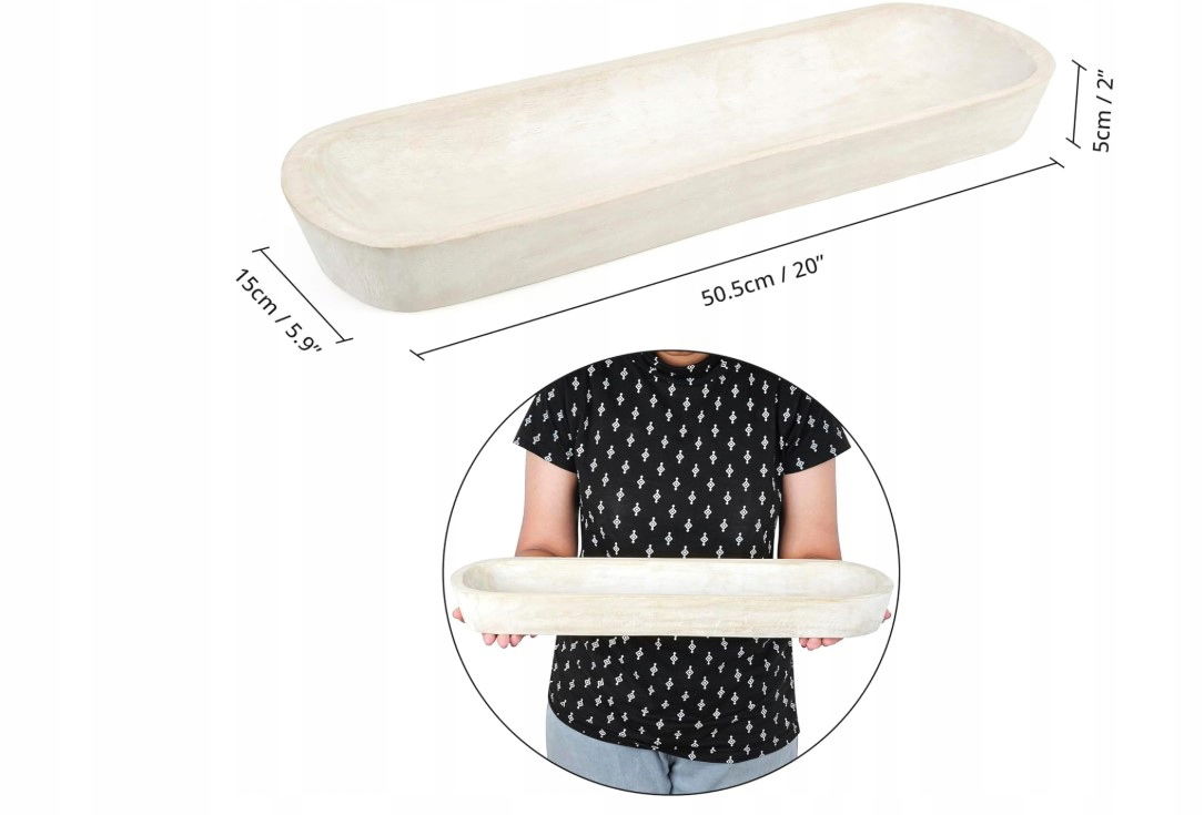 Wykonana z drewna paulownia, misa jest trwała i lekka. Jej beżowy kolor i prostokątny kształt pasują do wielu stylów wnętrz, od rustykalnego, po boho i Art Deco, stanowiąc unikalny element, który przyciągnie wzrok każdego.