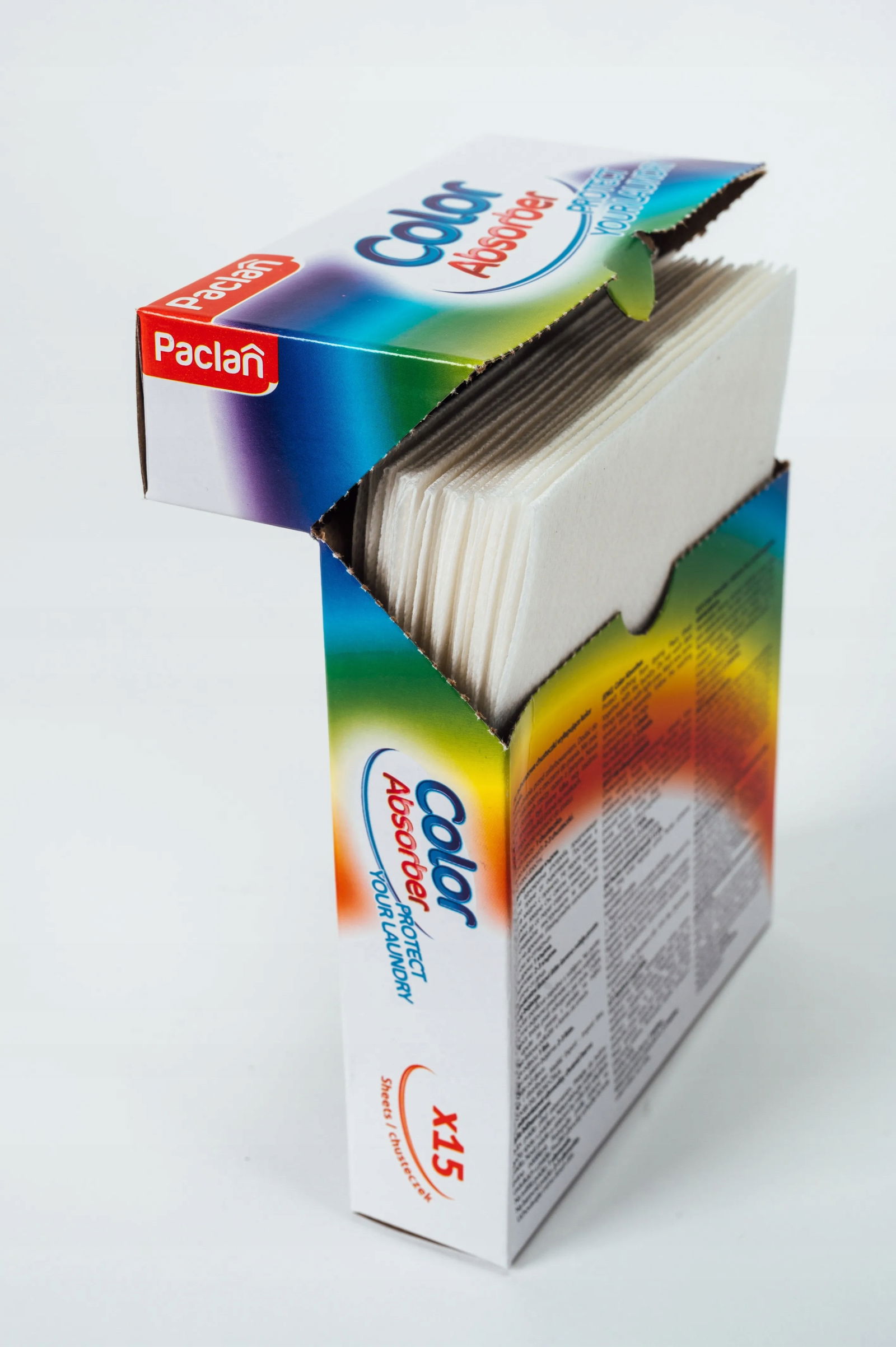 Chusteczki wyłapujące kolor to niezastąpiony produkt w każdej pralni. Wystarczy dodać do bębna pralki chusteczkę, aby mieć pewność że ubrania będą skutecznie chronione przed zafarbowaniem przez te o bardziej intensywnych kolorach. Innowacyjna struktura materiału i miękkie włókna bawełny chusteczek Paclan mają dużą siłę wchłaniania kolorów. Dzięki temu nie trzeba tak dokładnie segregować ubrań, co pozwala na znaczne oszczędności czasu, wody i prądu.