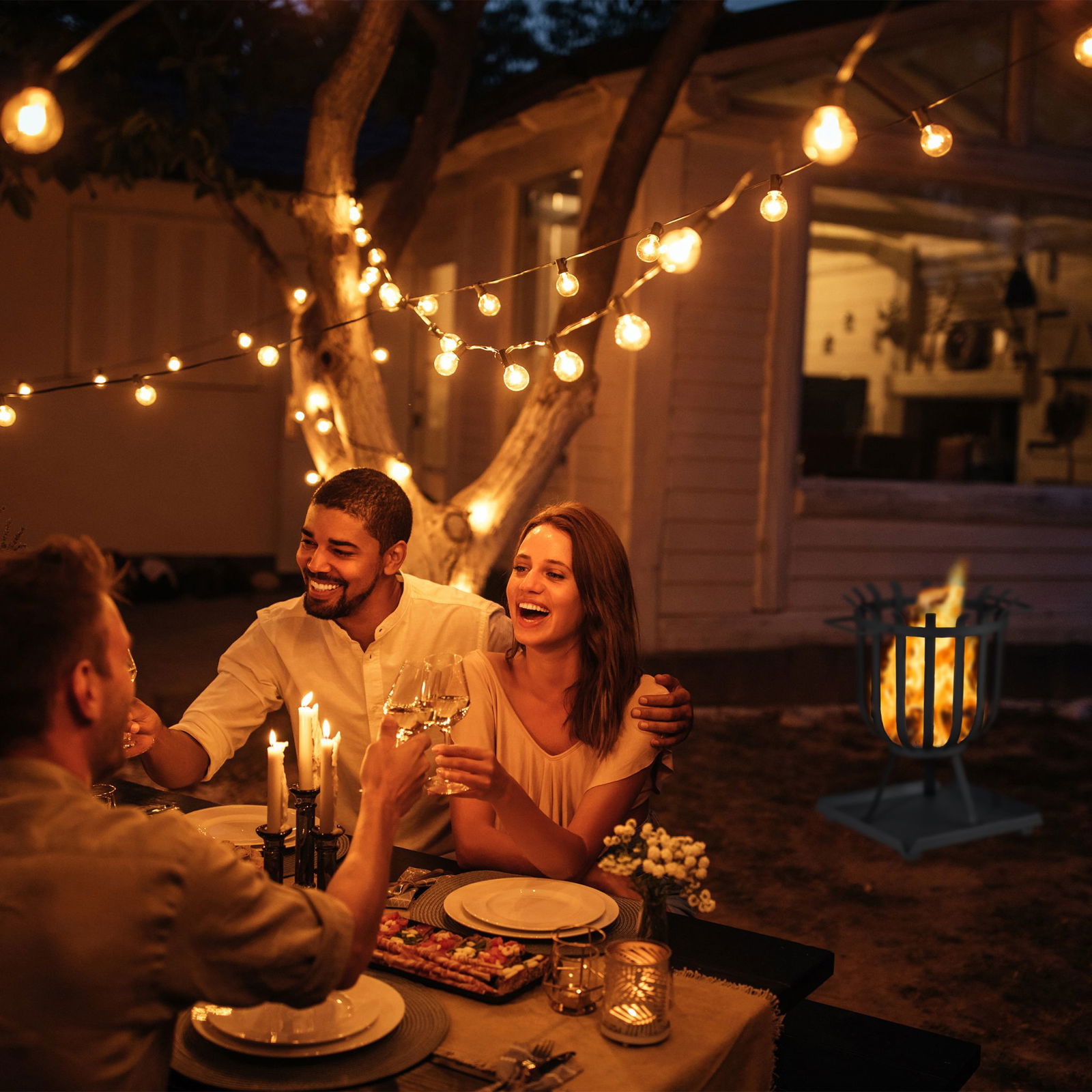 Czy w ciepły letni wieczór, czy w chłodne zimowe popołudnie, ognisko zawsze tworzy przytulną atmosferę. Przy okrągłym ognisku można upiec kiełbaski, pianki marshmallows lub napić się grzanego wina. Czarny kosz na drewno opałowe jest stabilny dzięki trójnożnej ramie i można go łatwo przenosić za pomocą uchwytów. Podstawa chroni podłoże przed spadającym żarem i popiołem, a pogrzebacz jest idealny do rozpalania ognia.