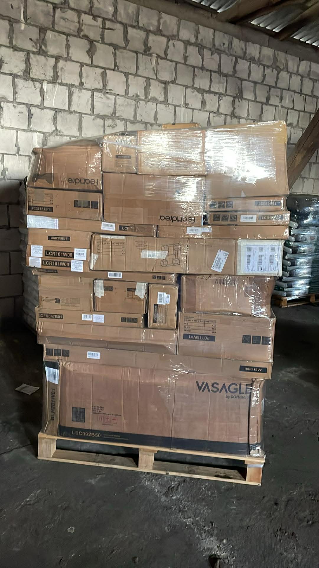 📦 Paleta wypełniona różnorodnym towarem – dokładnie tak jak na zdjęciu. Duża liczba kartonów z meblami i akcesoriami pozwala uzyskać atrakcyjny zwrot z inwestycji przy odsprzedaży pojedynczych produktów.