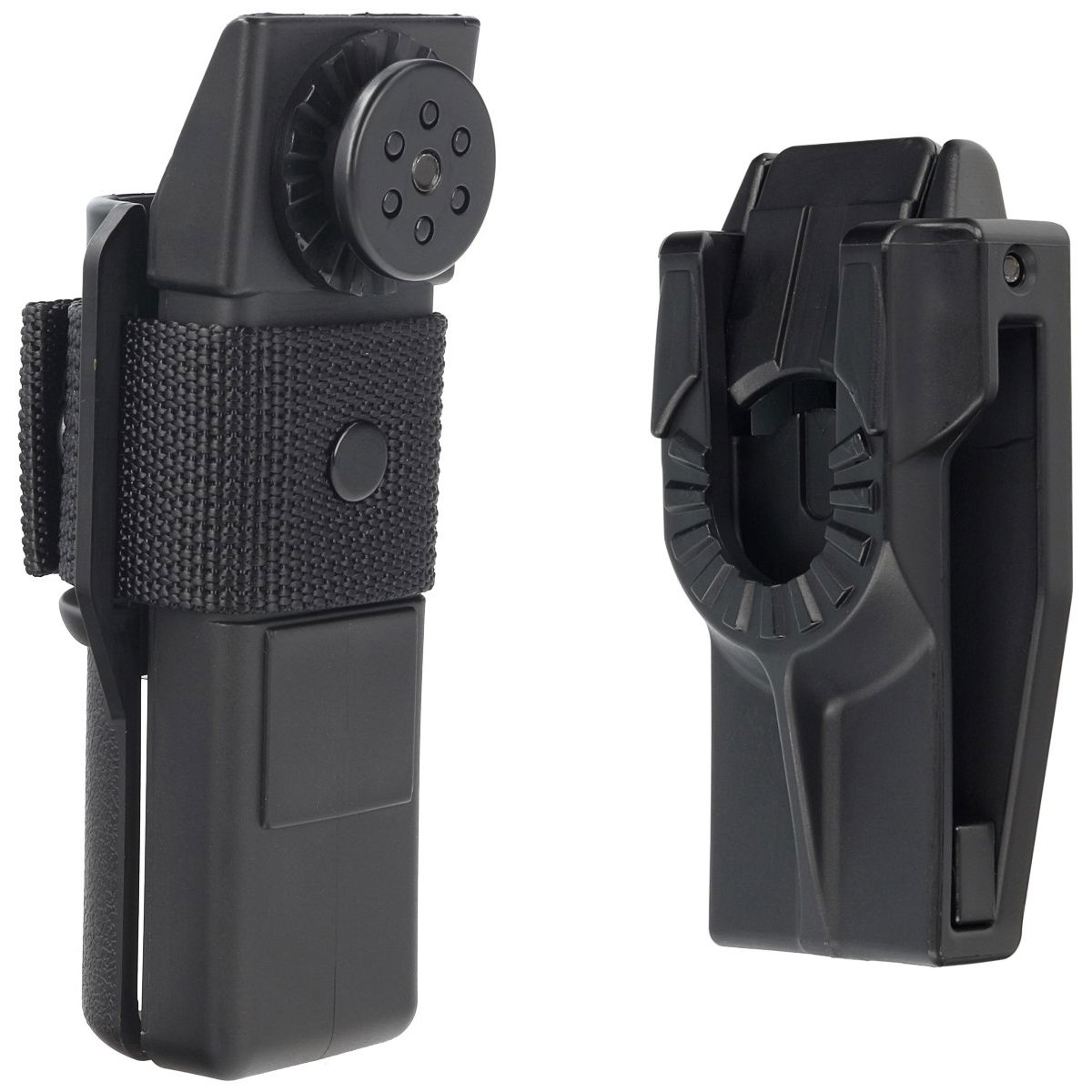 Ładownica - opatentowana konstrukcja umożliwia obrót uchwytu o pełne 360° oraz blokowanie w jednej z 16 pozycji. Pałka może być przenoszona złożona lub rozłożona w pozycji pionowej, poziomej jak i innej dowolnej. Kaburę wykonano z ciężkiego (heavy-duty), utwardzanego polipropylenu w kolorze czarnym.